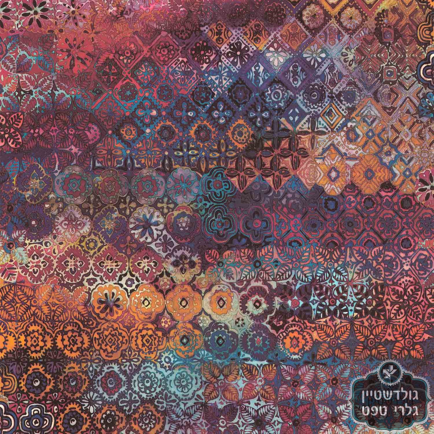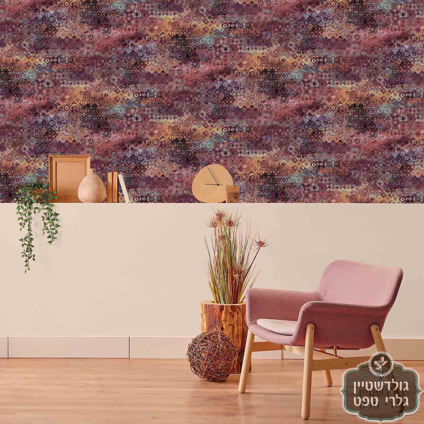 טפט בסטייל אריחים ארט דקו בגווני טרה קוטה, כתום, טורקיז