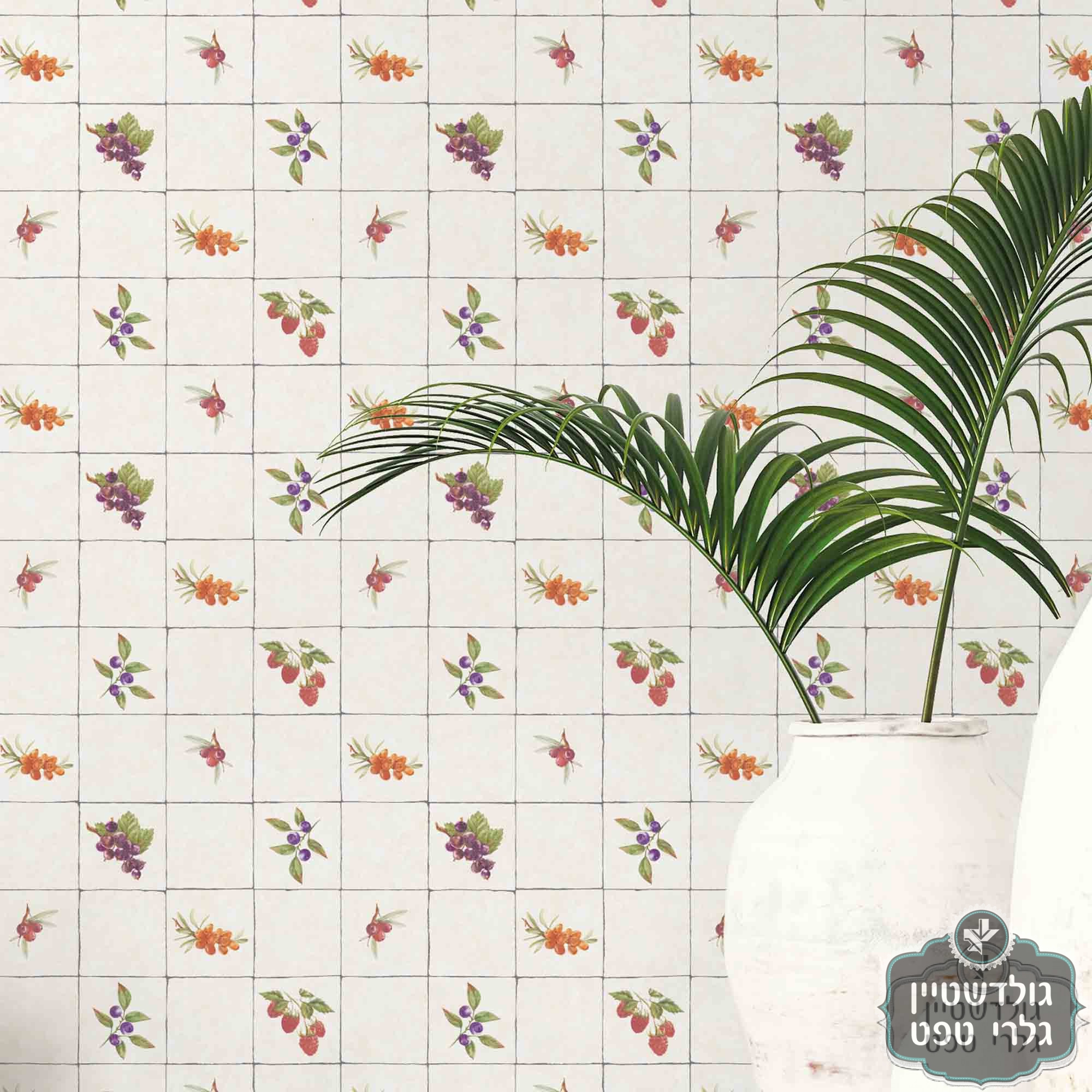 טפט אריחים עם פירות, וינטג' לקירות בלבד, לא מיועד להדבקה על קרמיקה