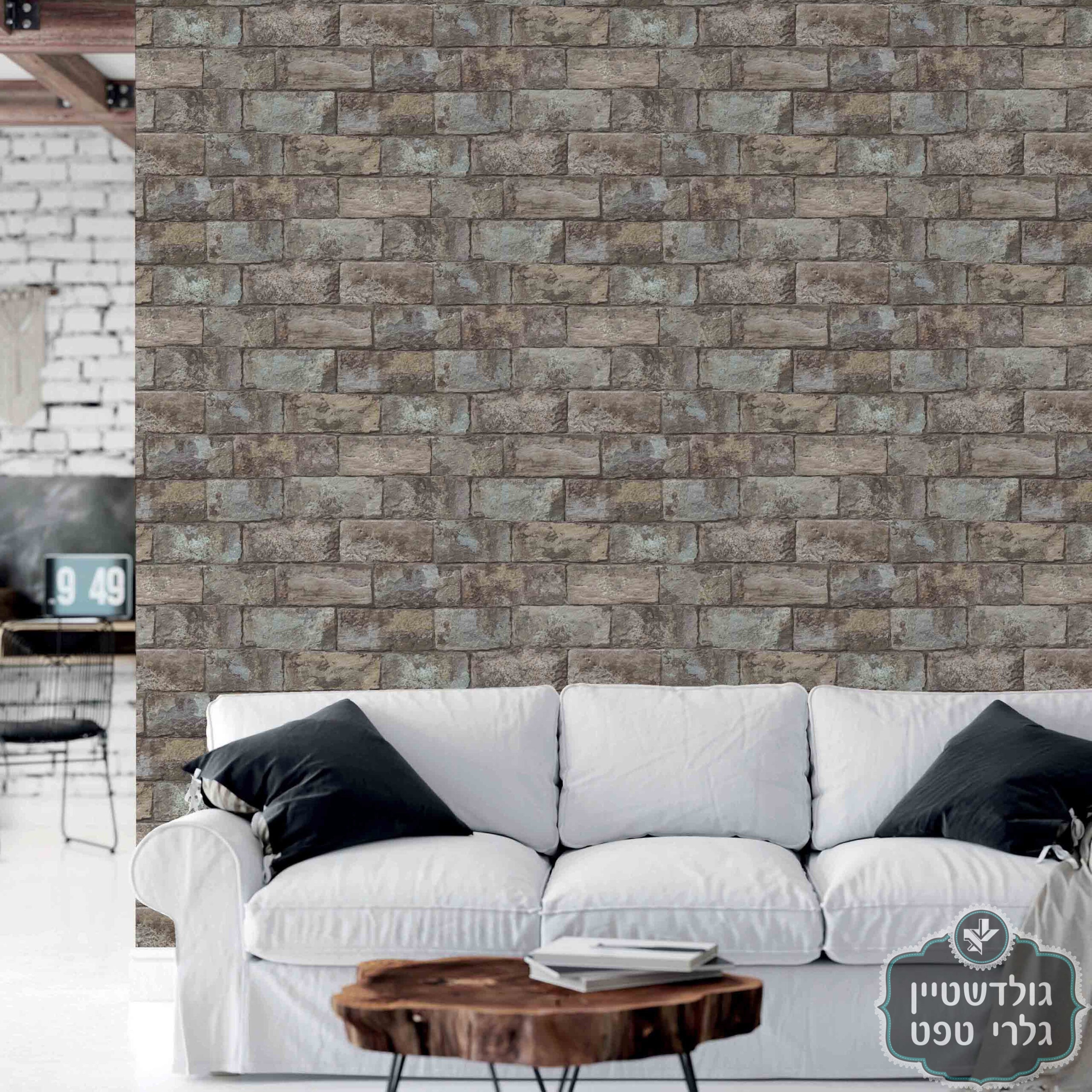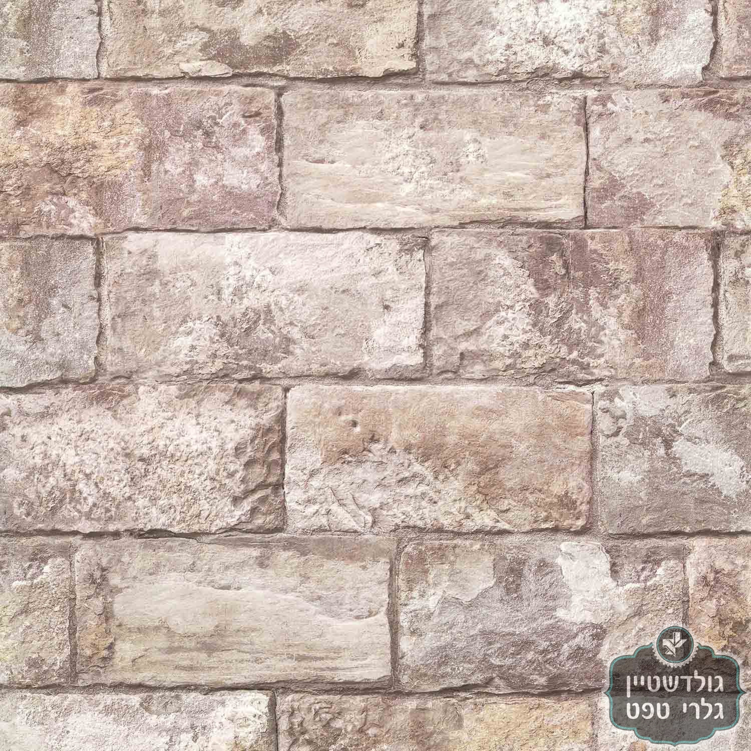 טפט בריקים נראה כמו תלת מימד צבע חום בז' אבן