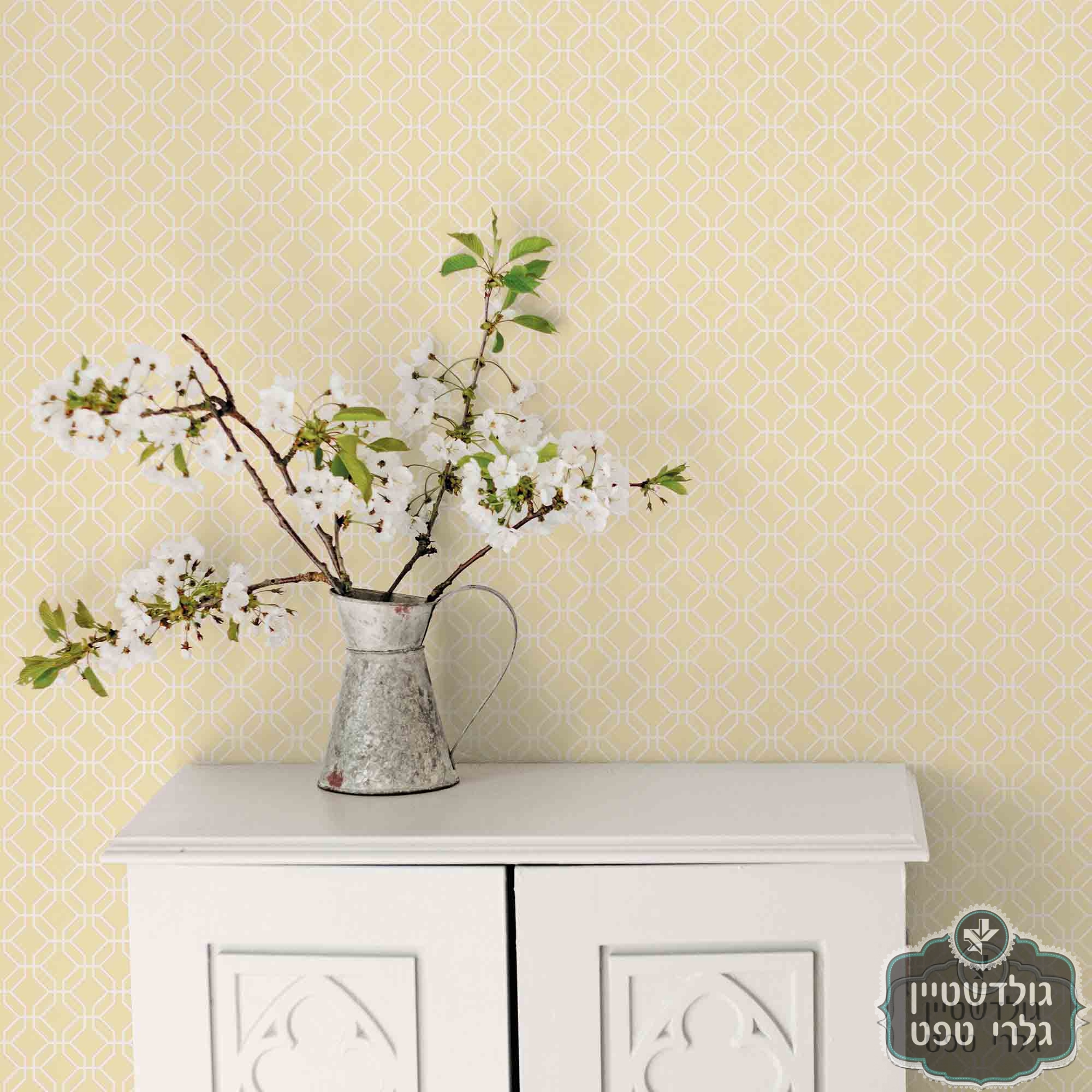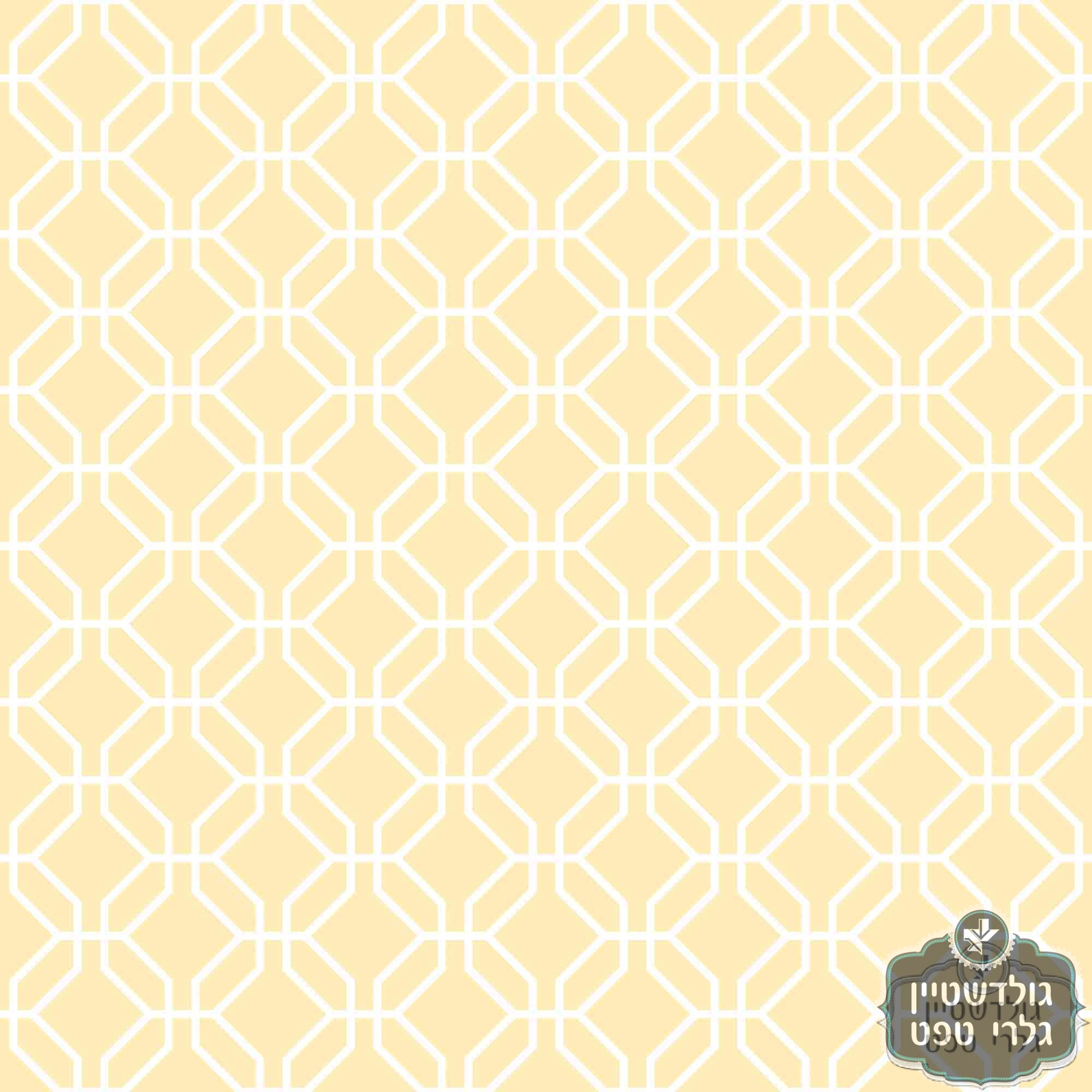 טפט גאומטרי משרבייה לבן על רקע צהוב עדין