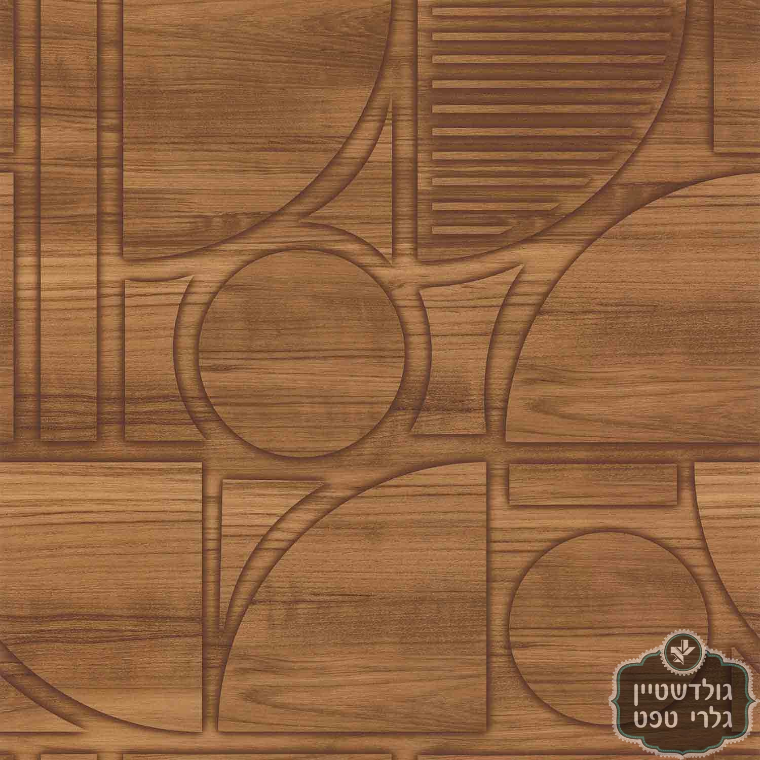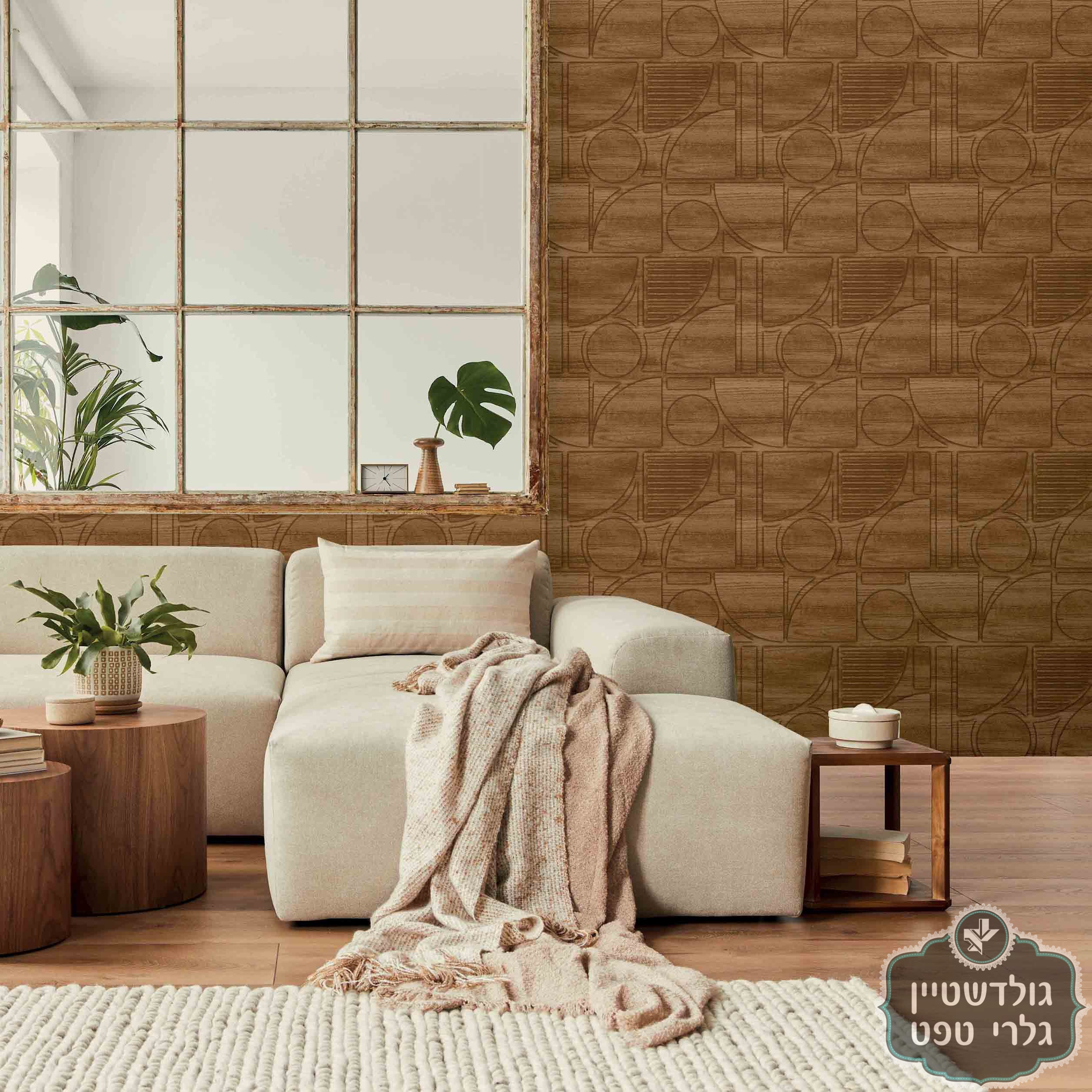 טפט גאומטרי תלת מימד על רקע טקסטורה דמוי עץ צבע חום