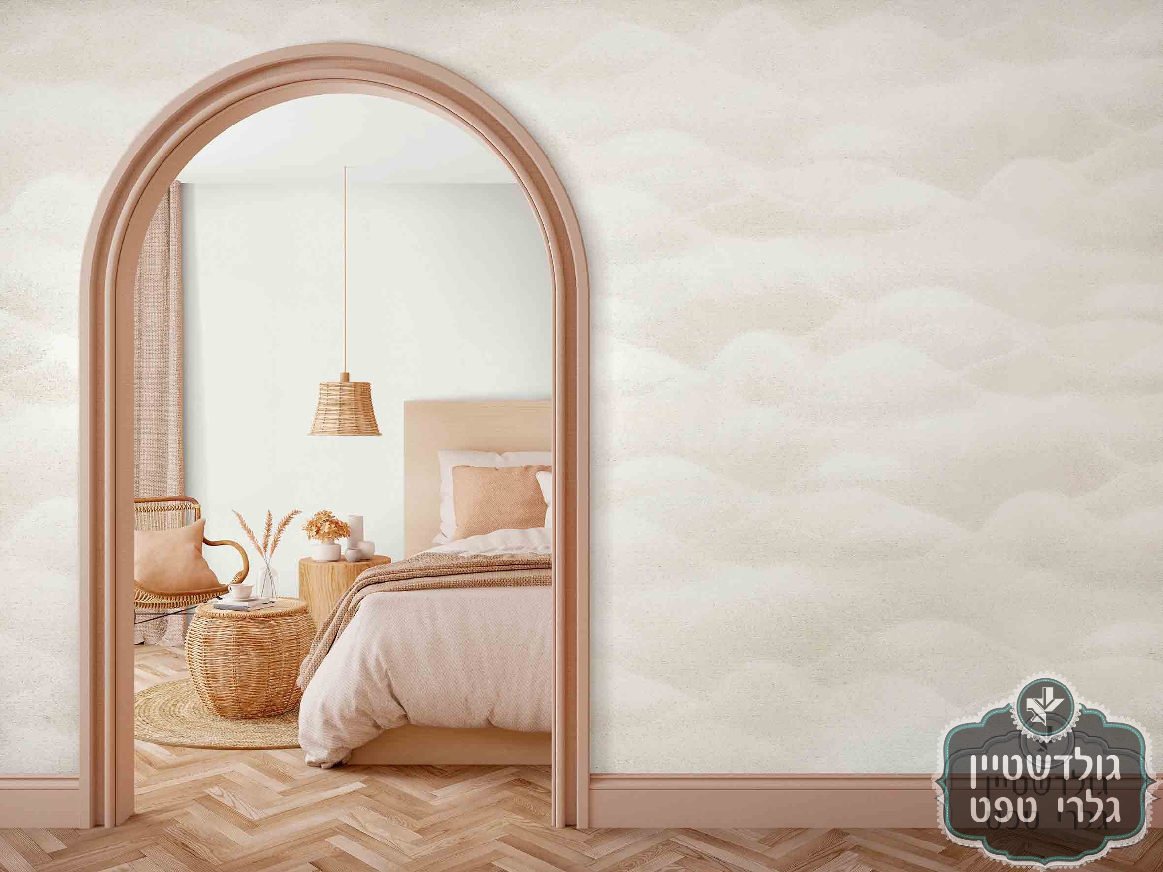 טפט גלים | עננים יוקרתי סלוני בגווני אפור כסוף, גרז', שמנת , בז