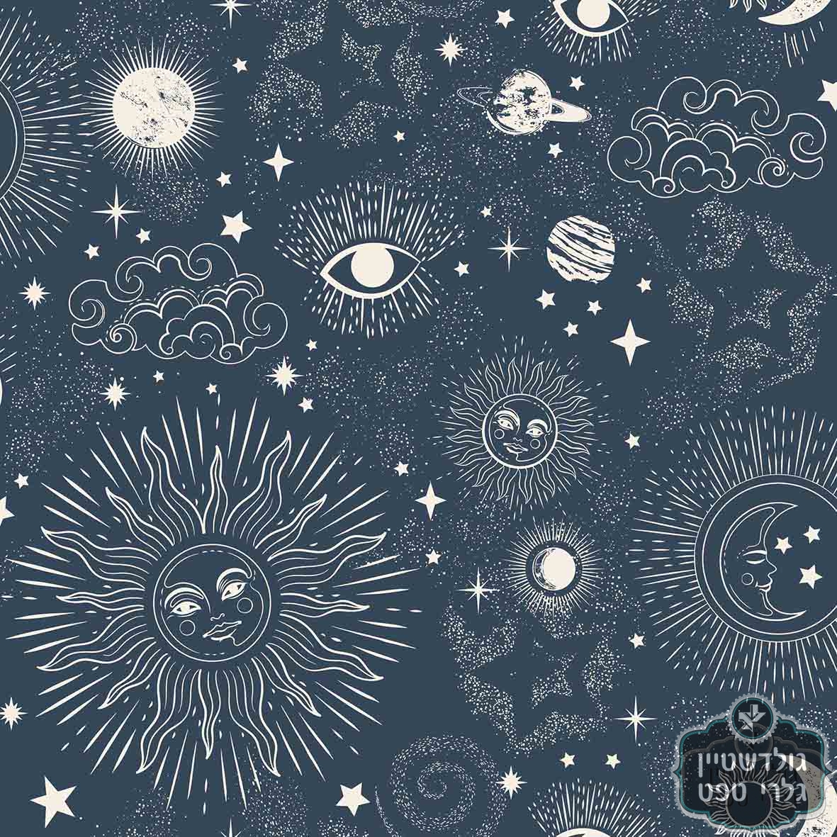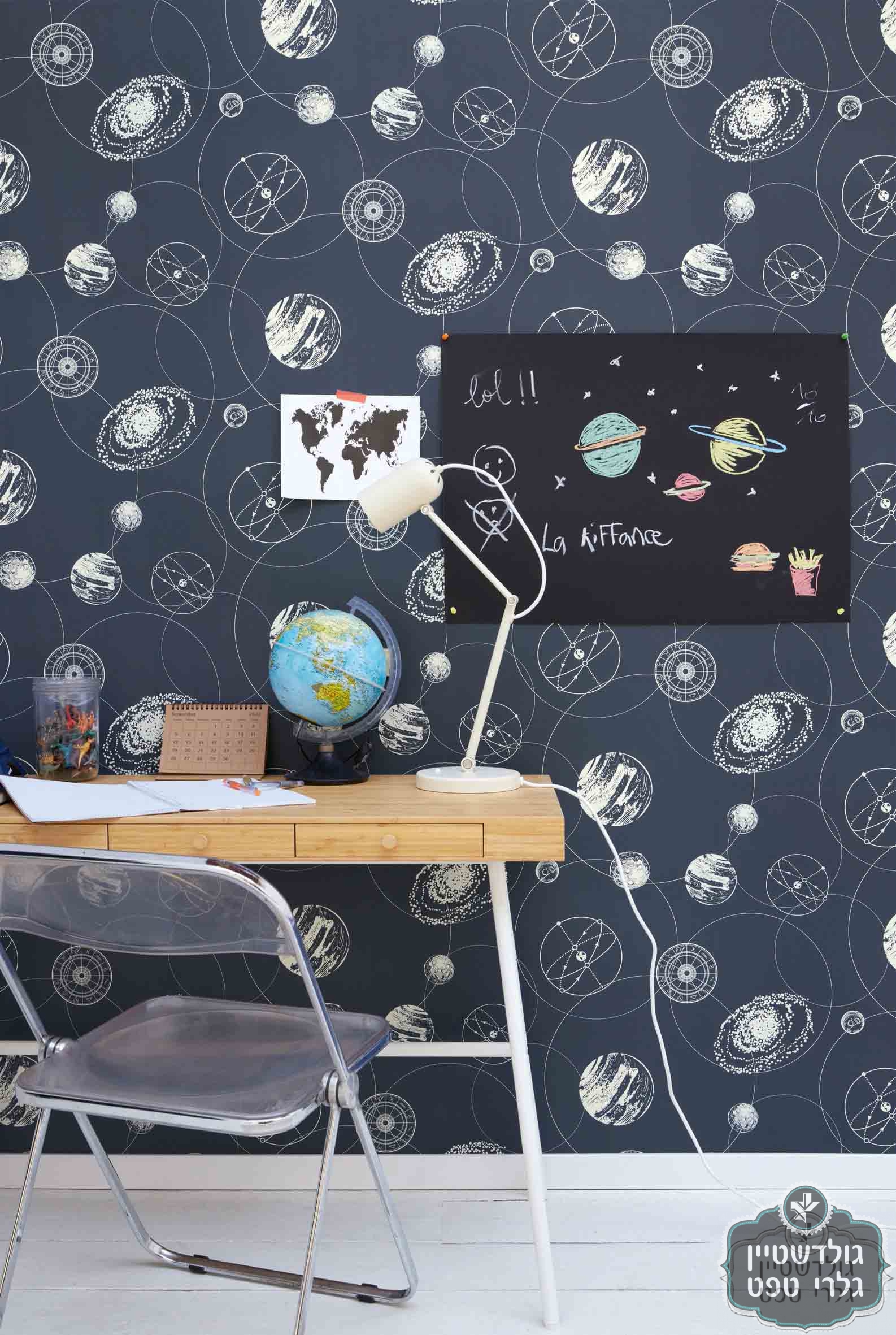 טפט גלקסיה מערכת השמש לבן על כחול כהה