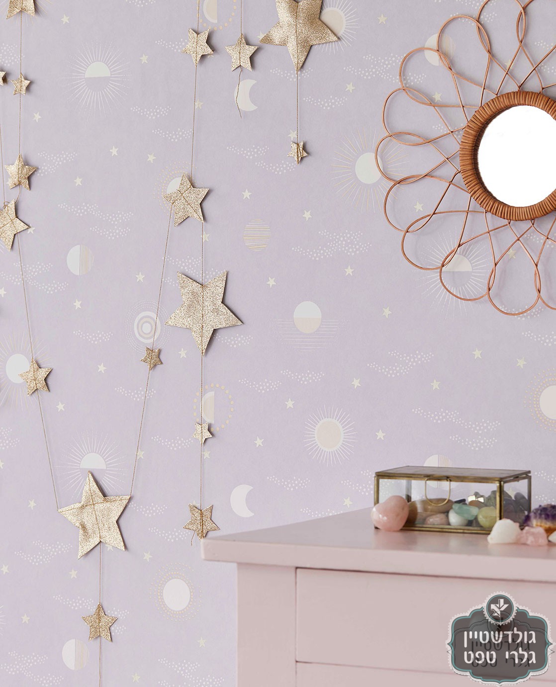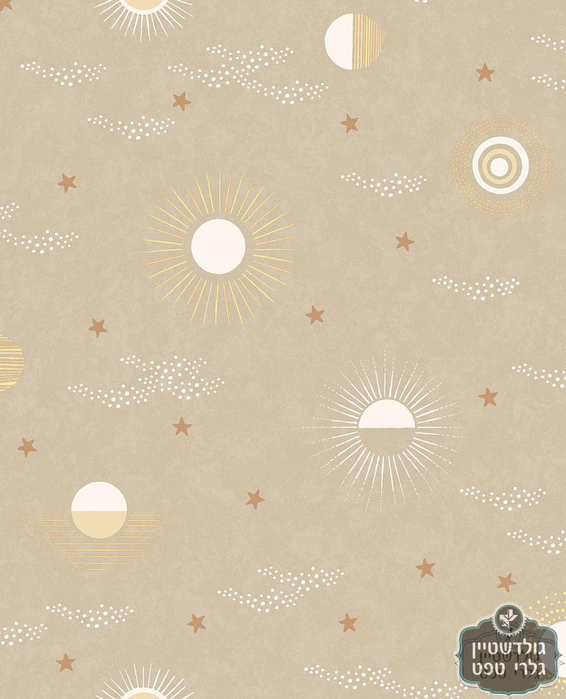 טפט גלקסיה, שמש, ירח, כוכבים, עננים, על רקע בז' חאקי