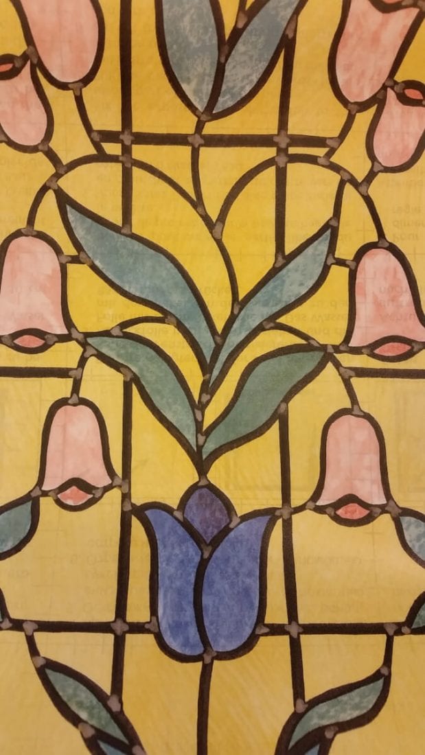 טפט דביק , טפט שקוף צהוב דמוי ויטרז' לחלון רוחב 90