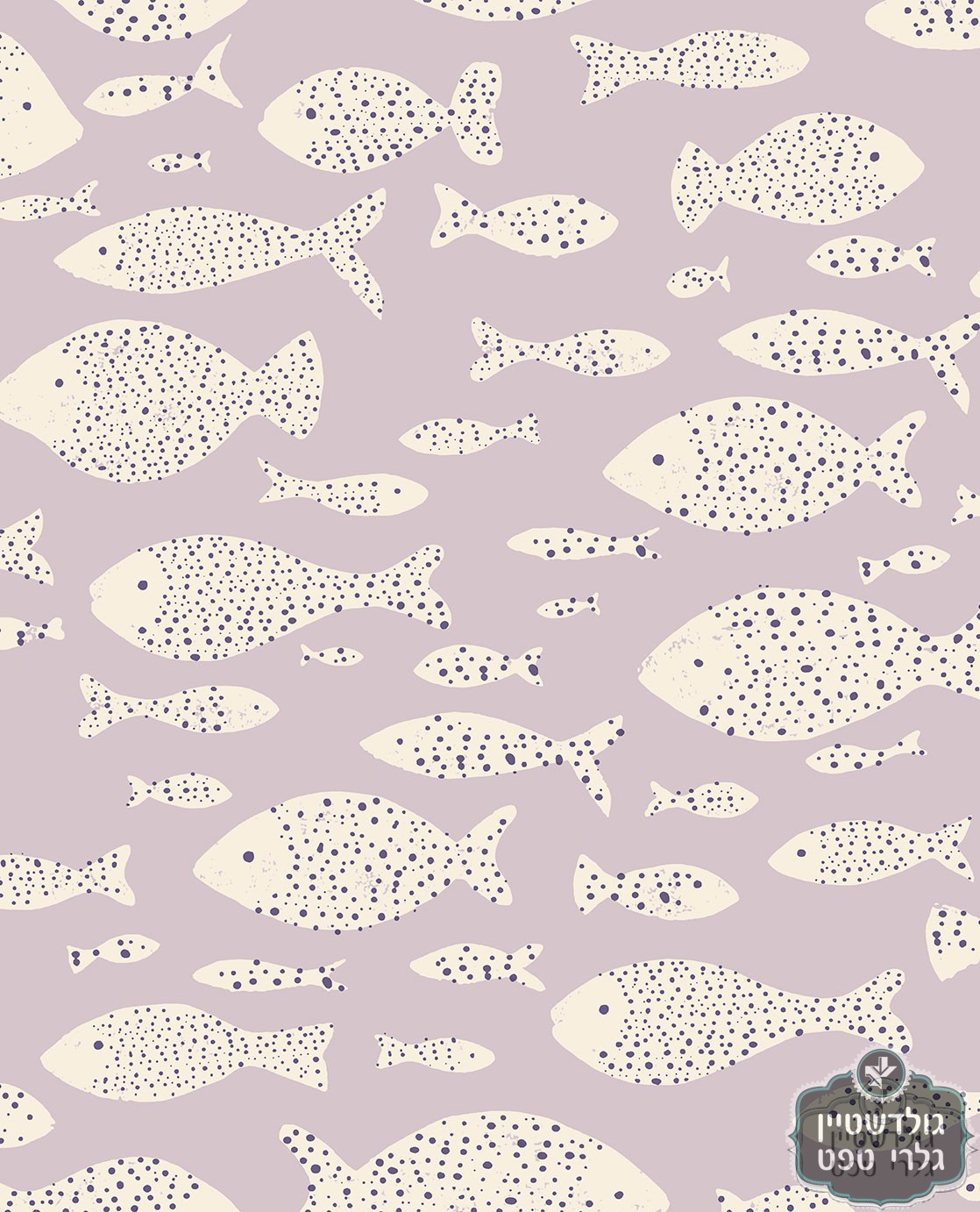 טפט דגים לבן, נקודות שחור, רקע סגול