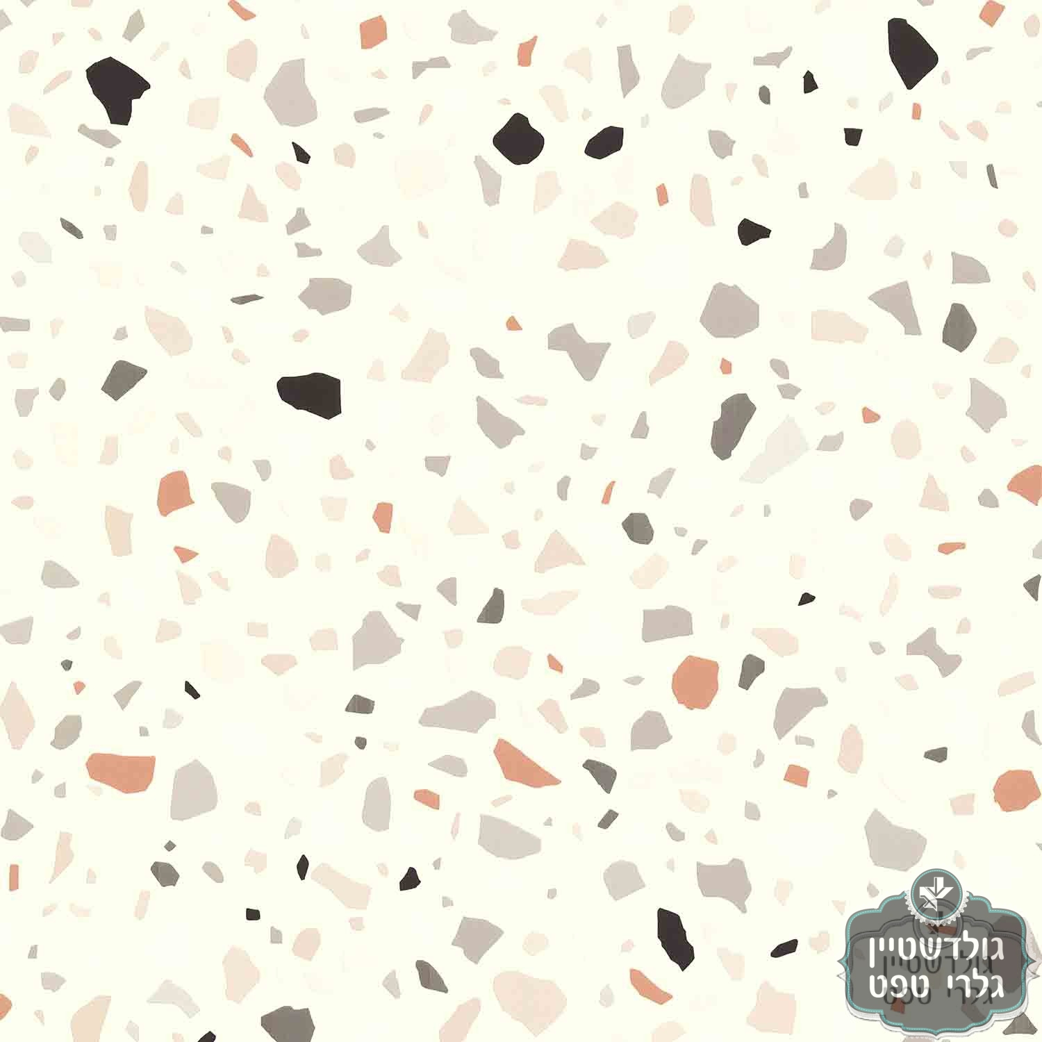 טפט דמוי טראצו, רקע לבן, אפור, גרז', חום