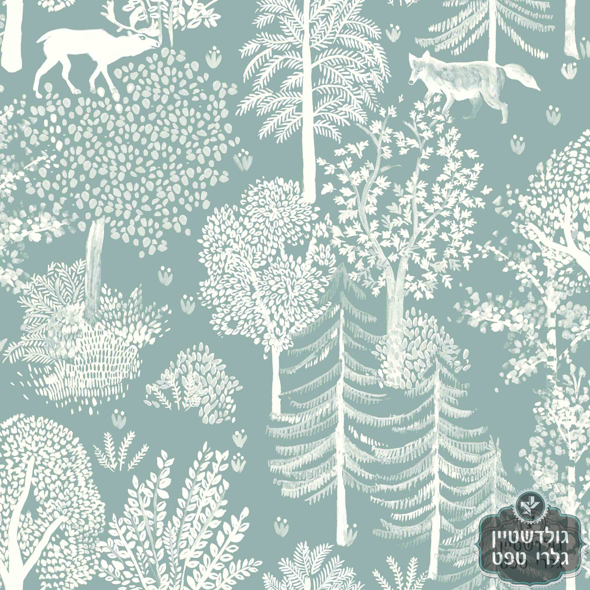 טפט יער עם אייל וזאב לבן על רקע תכלת
