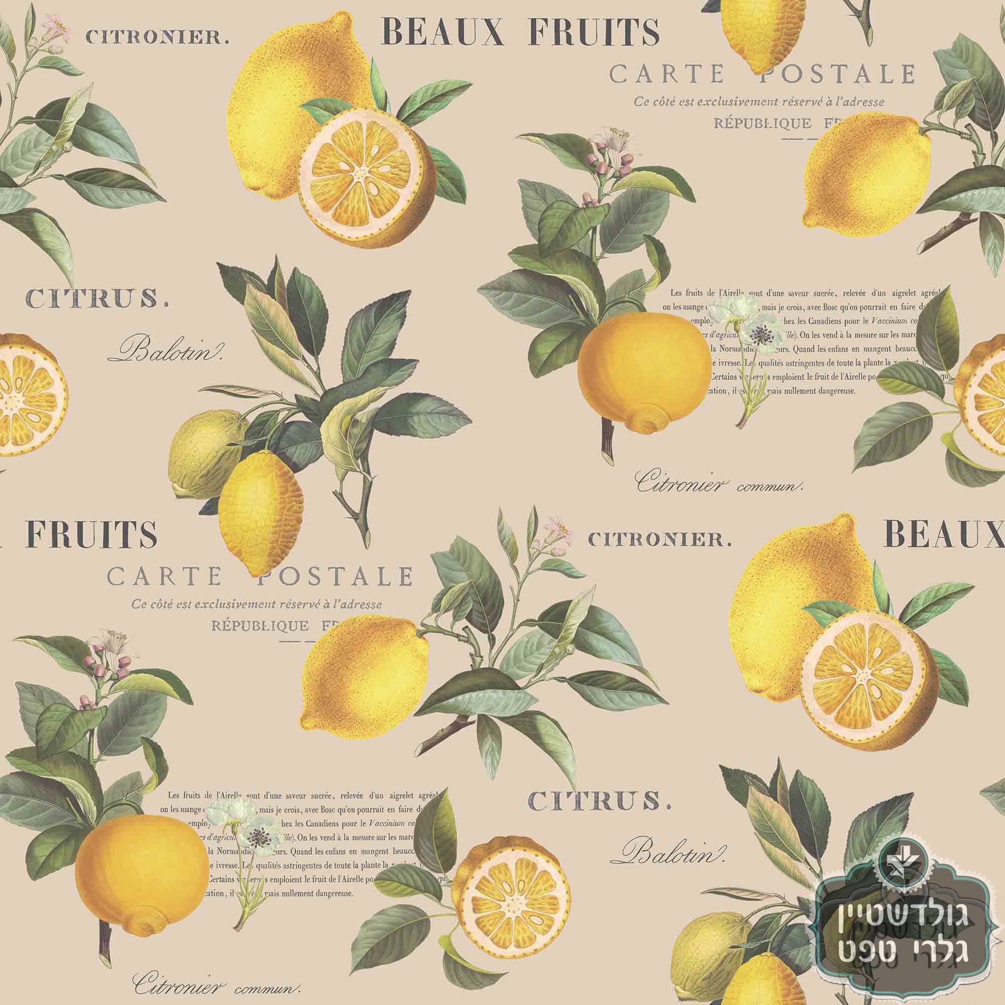 טפט לימונים, לימון צהוב רקע בז', כיתובים בשחור