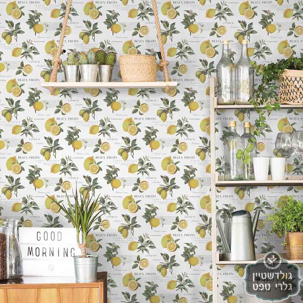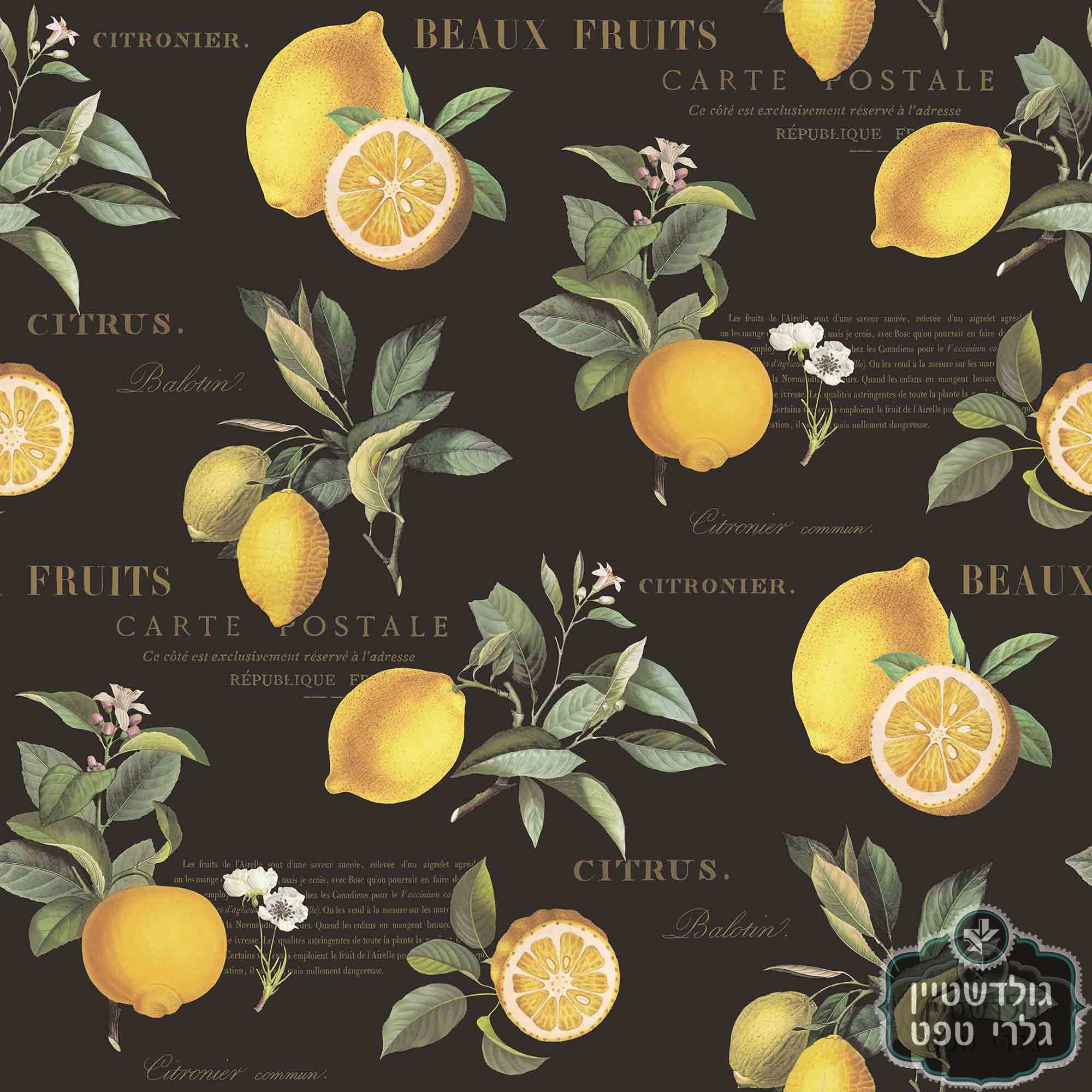 טפט לימונים, לימון צהוב רקע שחור, כיתובים קרם