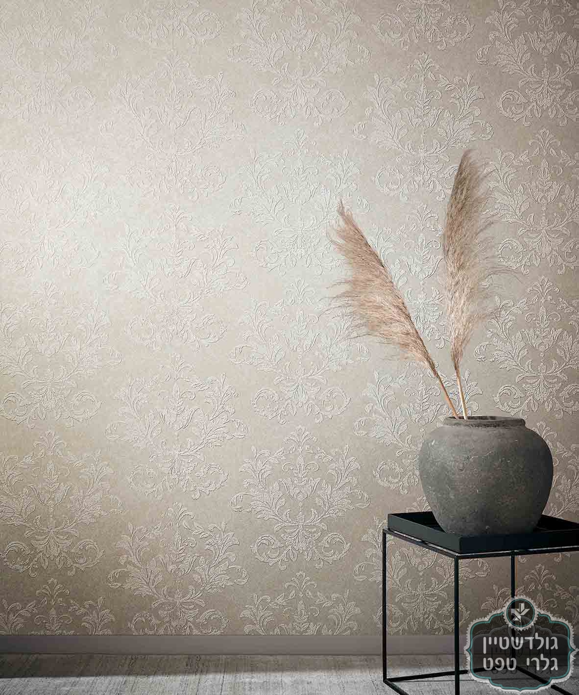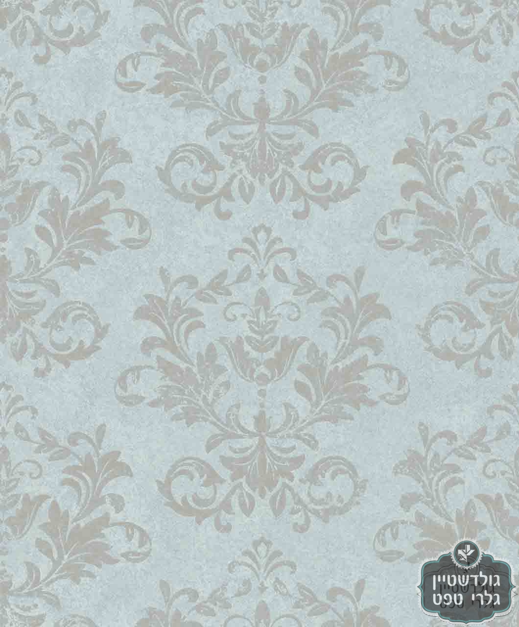 טפט מדליונים קלאסי, על רקע ווש מודרני, טקסטורלי, אפור גרז' על רקע אפור בהיר