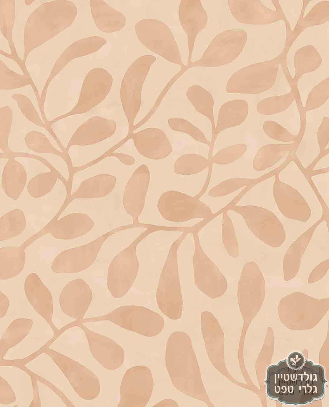 טפט עלים נקי מאוייר על רקע חלק, חום טרה-קוטה על רקע כתום ניוד