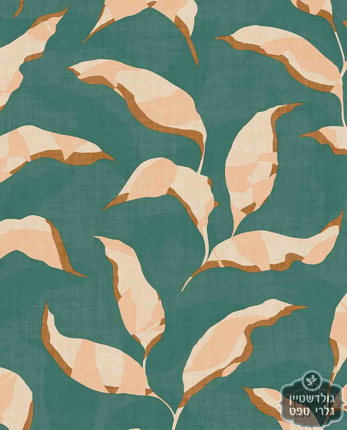 טפט עלים אבסטרקט, חום בז' שמנת על רקע ירוק בקבוק