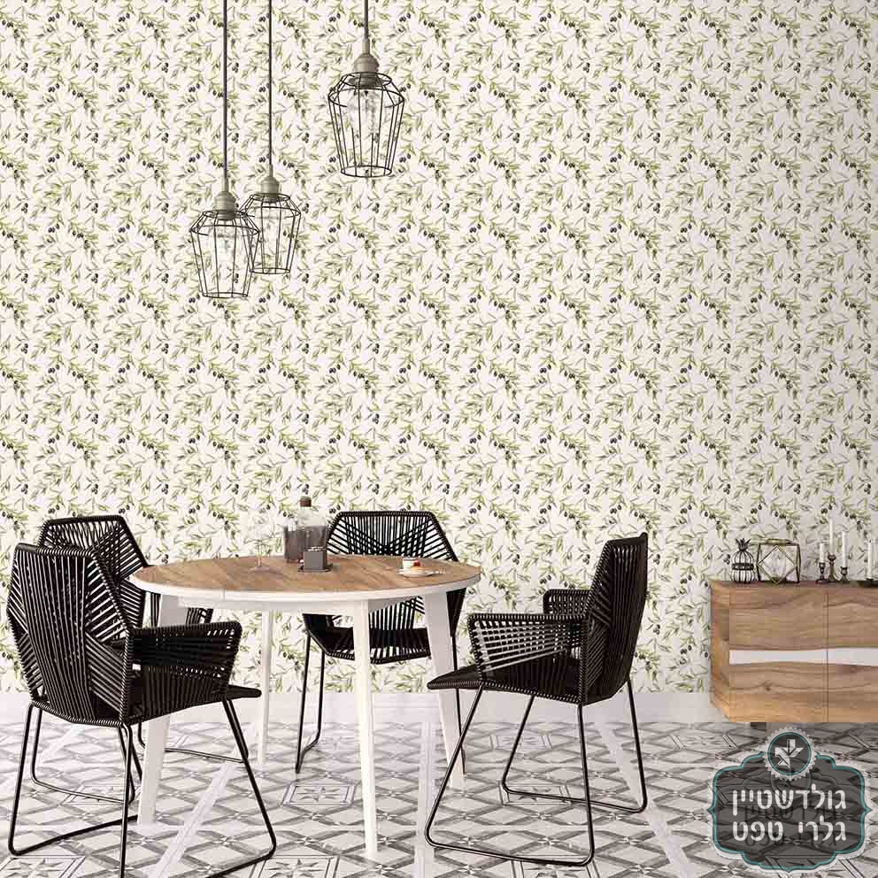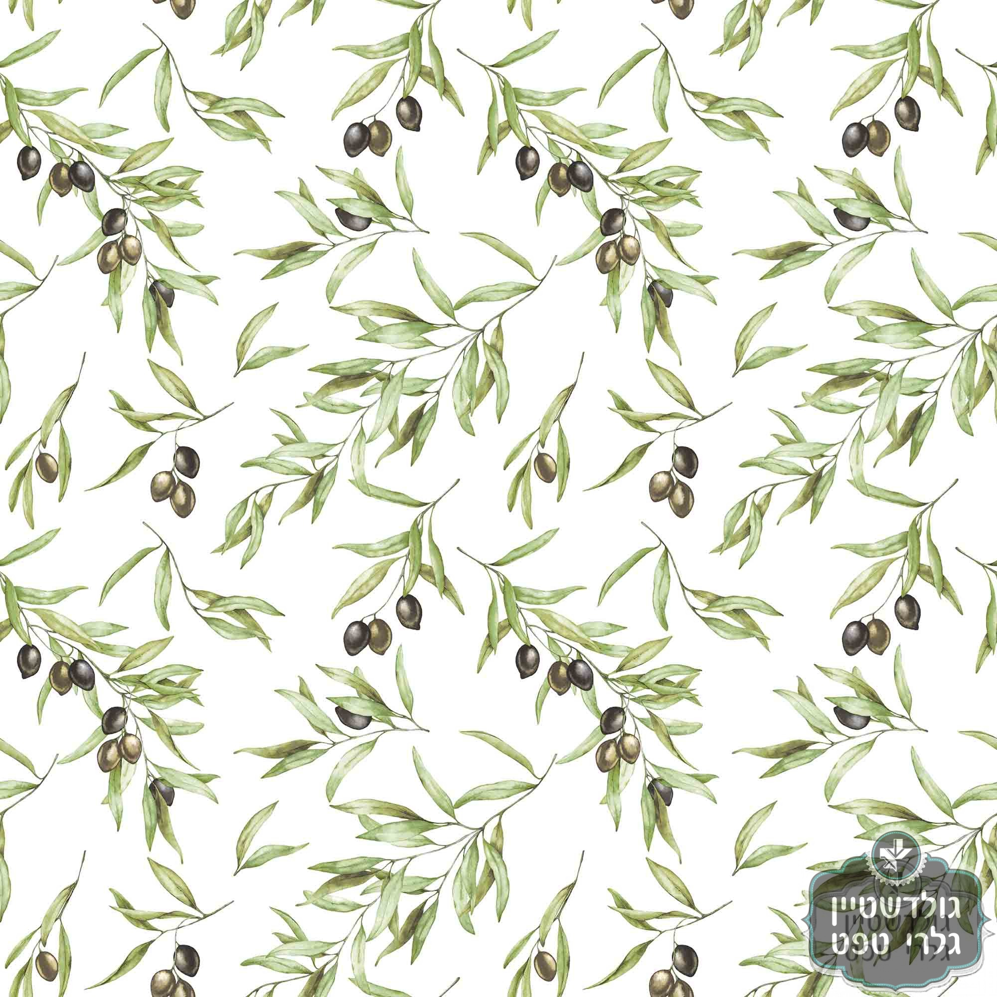 טפט עלי זית, זיתים שחורים על רקע לבן