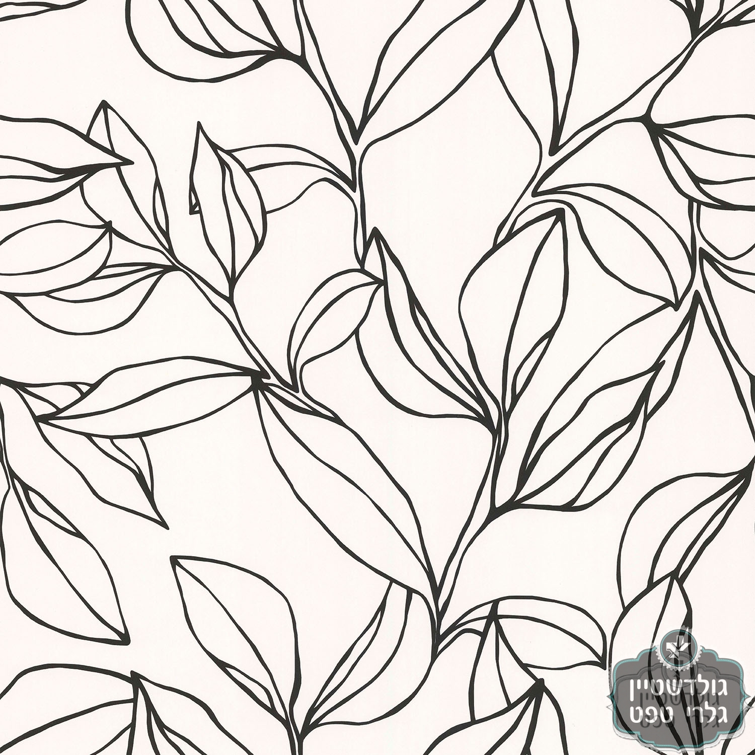 טפט עלים קווי מתאר שחור לבן