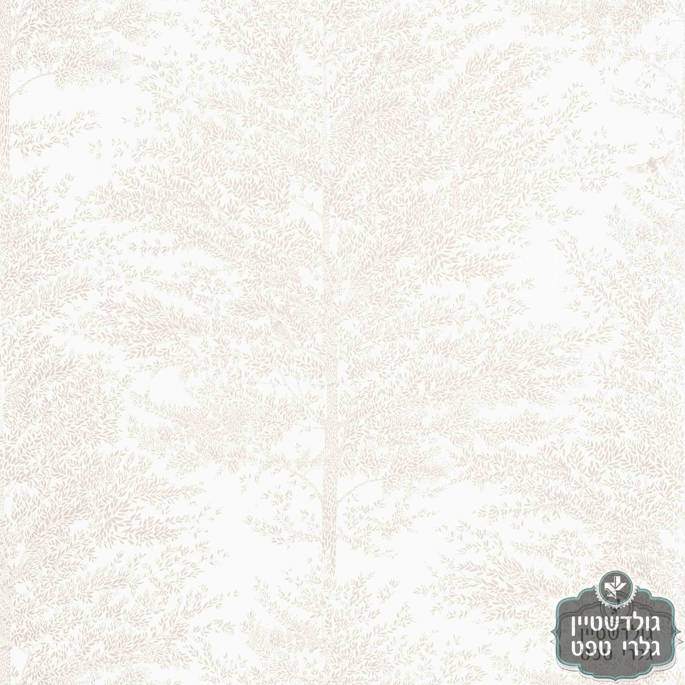 טפט עצים ביער נורדי, לבן , נגיעות ציפורים ועלים בפנינה