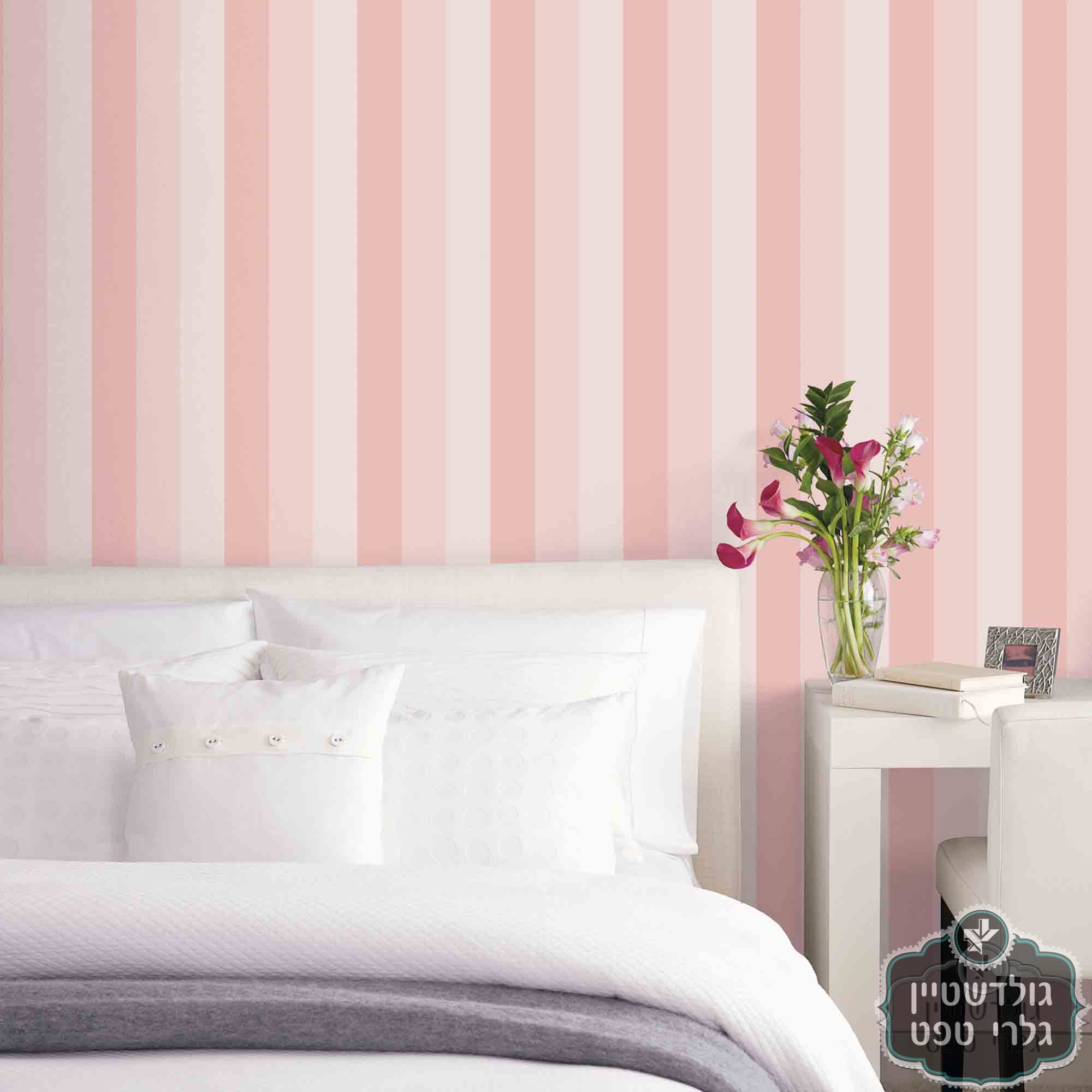 טפט פסים שלושה גוונים, ורוד, ורוד בייבי, אפרסק, עובי כל פס 9 סנטימטר