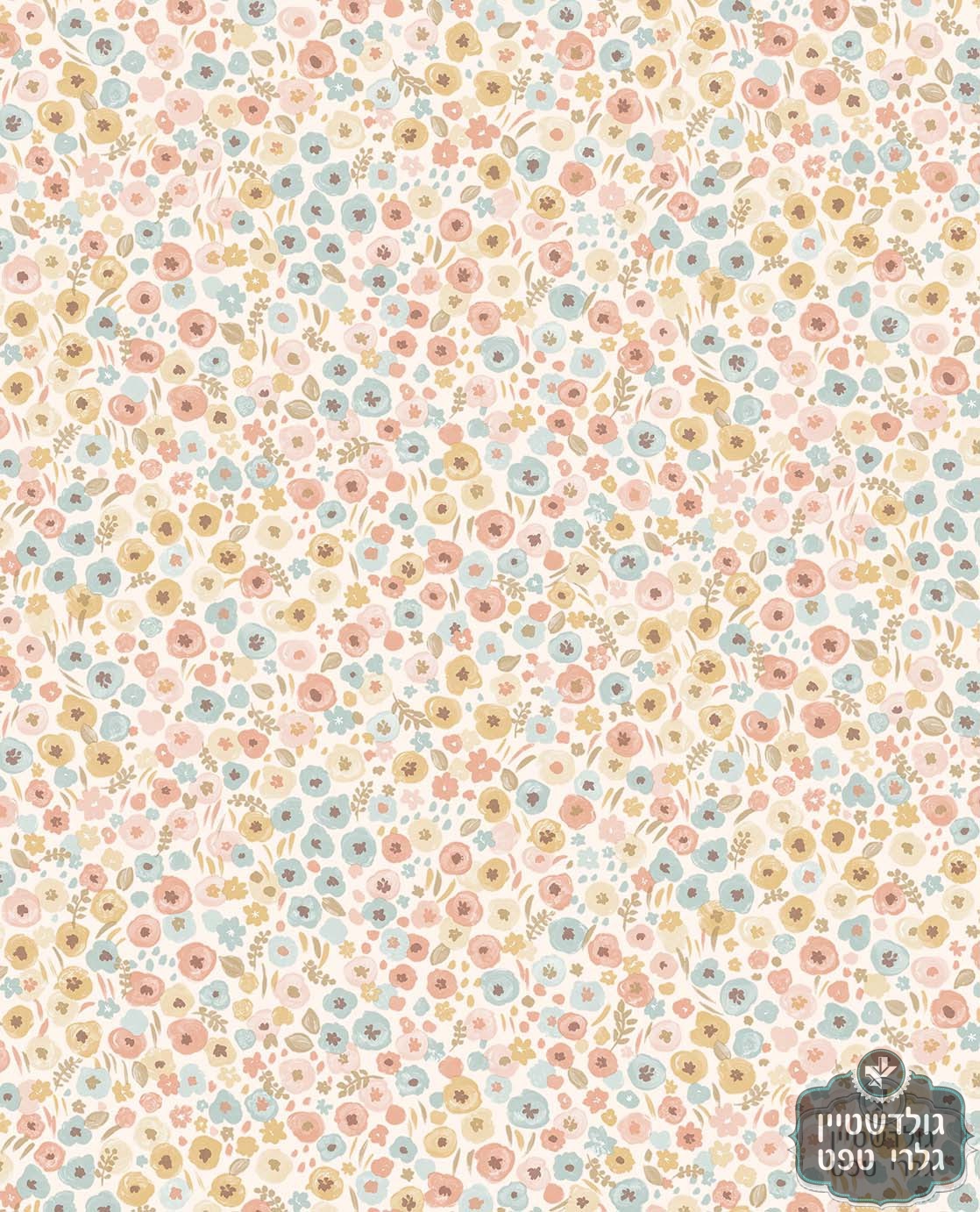 טפט פרחים מצוירים, קטנים, ורוד תכלת רקע שמנת