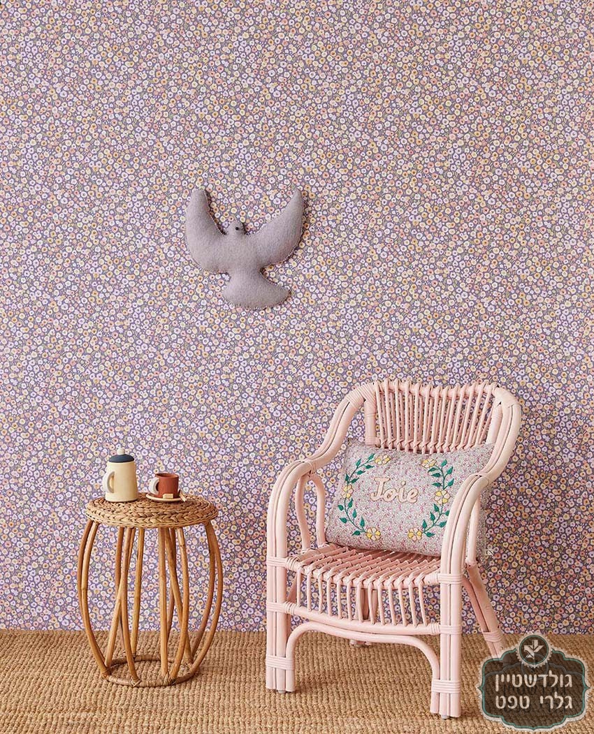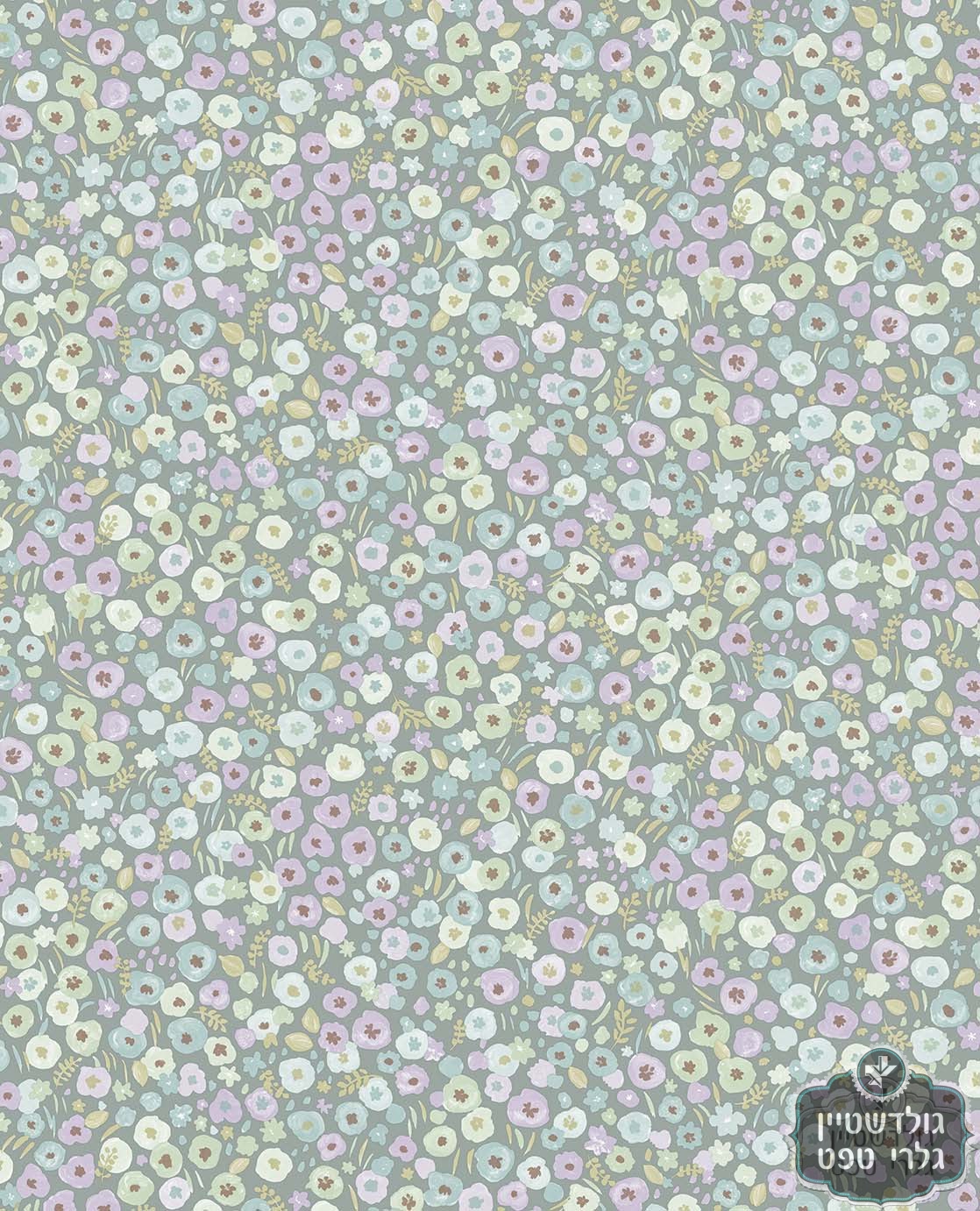 *טפט פרחים קטנים סגול ירקרק על רקע ירוק מרווה