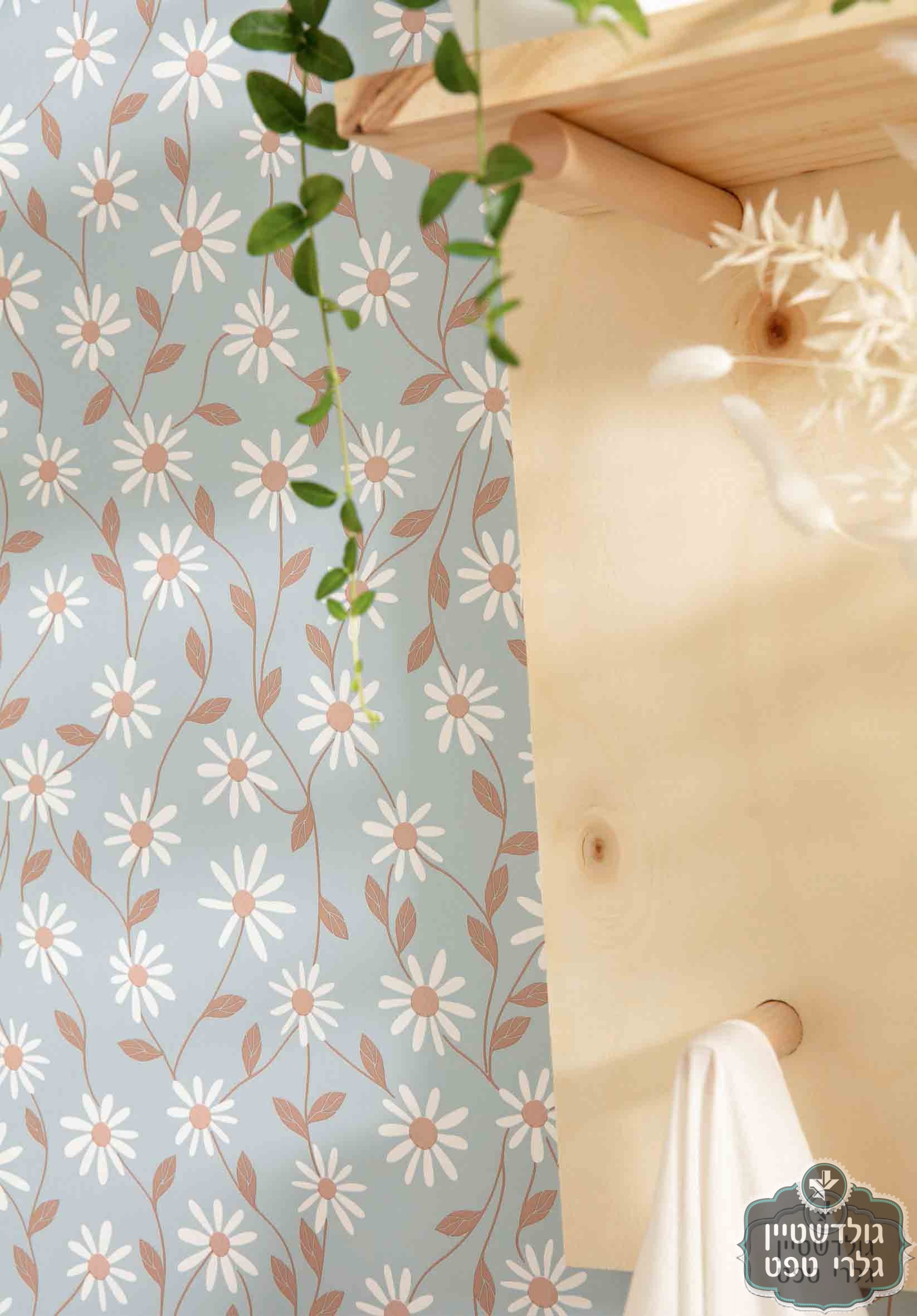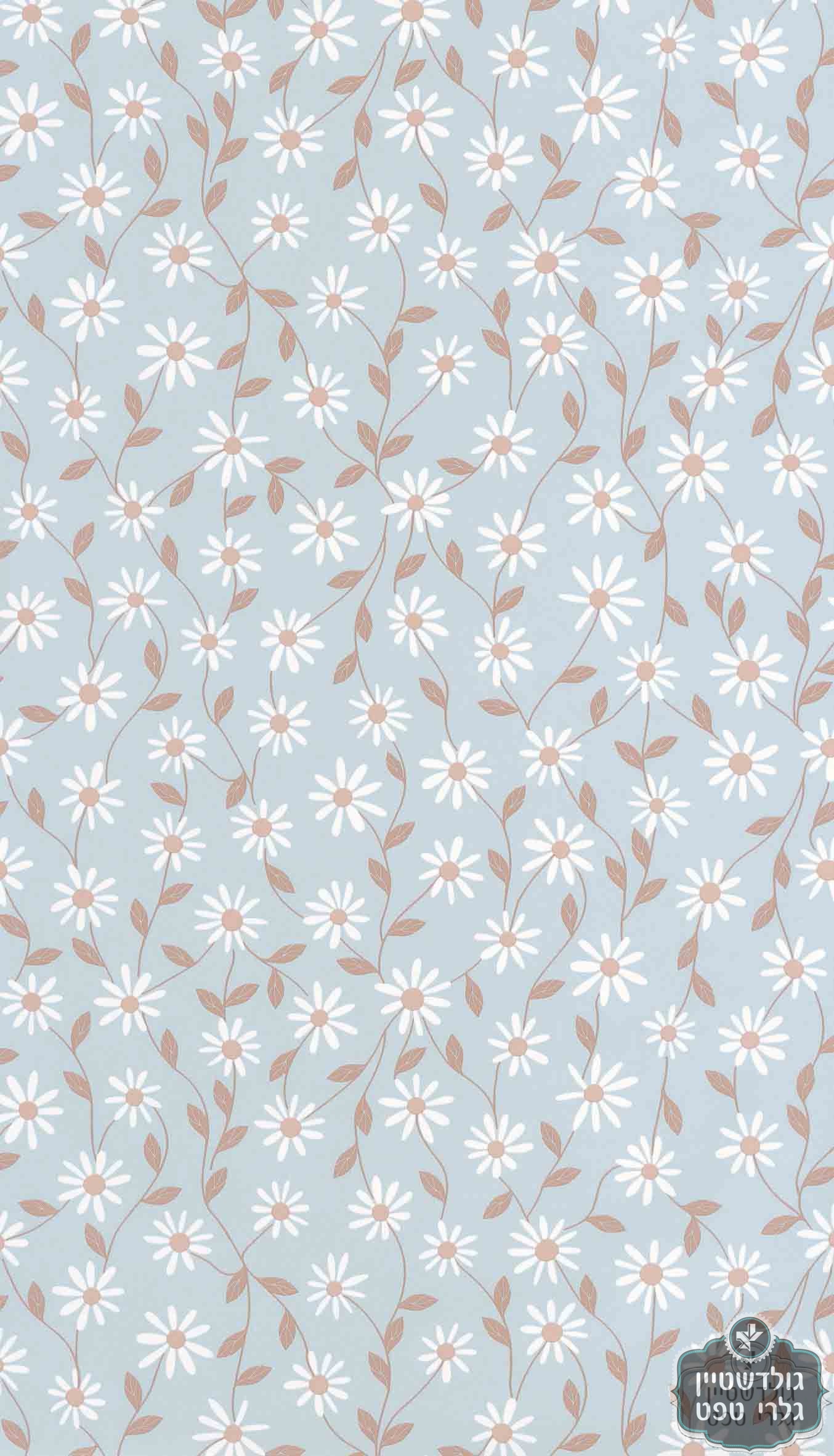 טפט עלי כותרת פרחי מרגרטה, רקע תכלת, פרחים לבן נגיעות חום