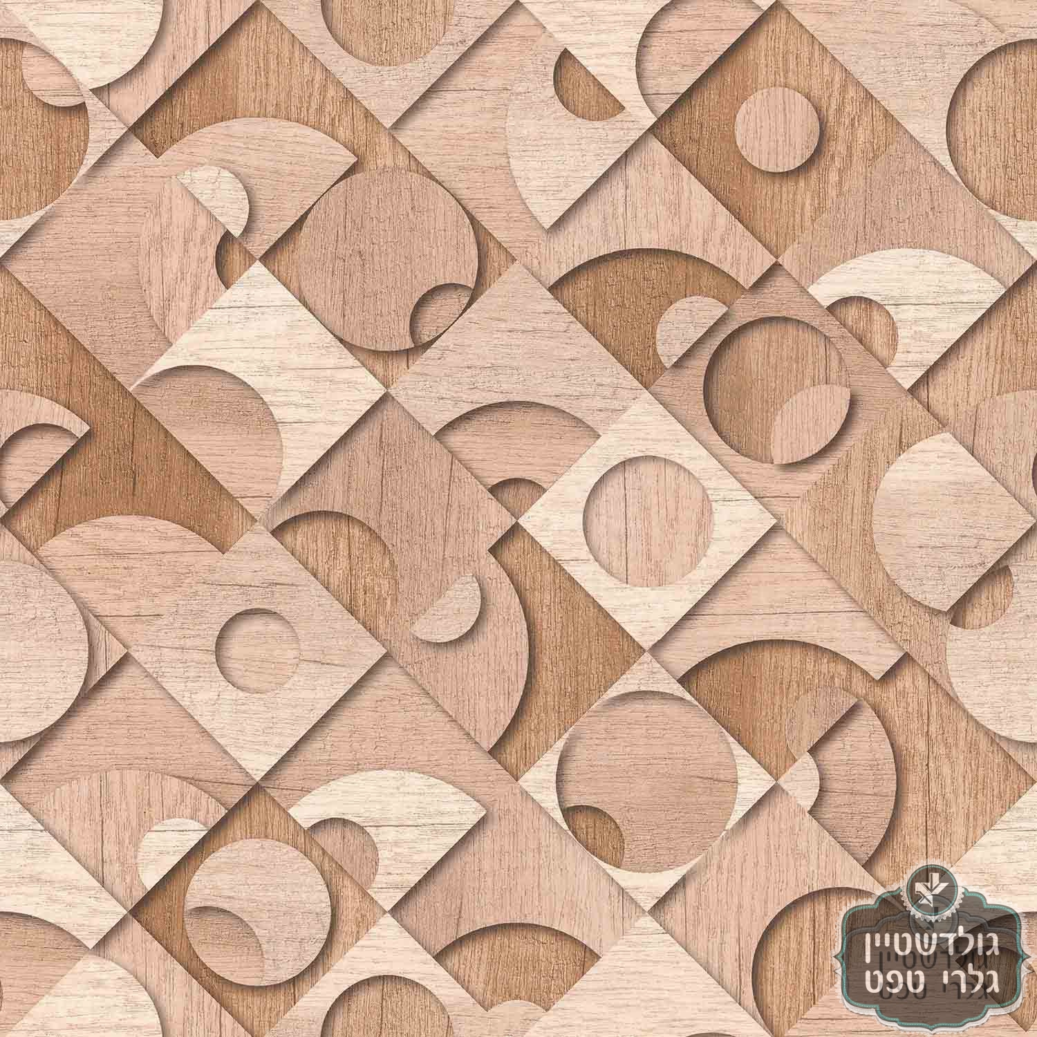 טפט במראה תלת מימד, קוביות חתוכות בצורות גאומטריות שונות, בגווני חום בהיר
