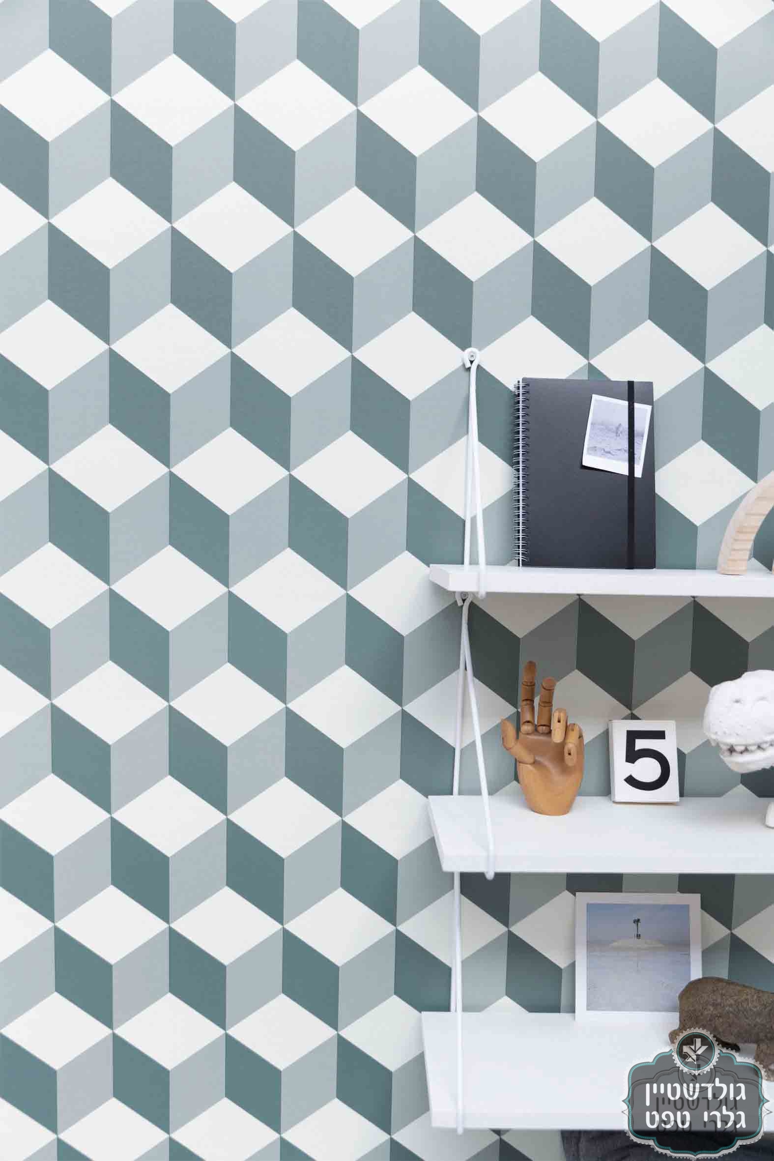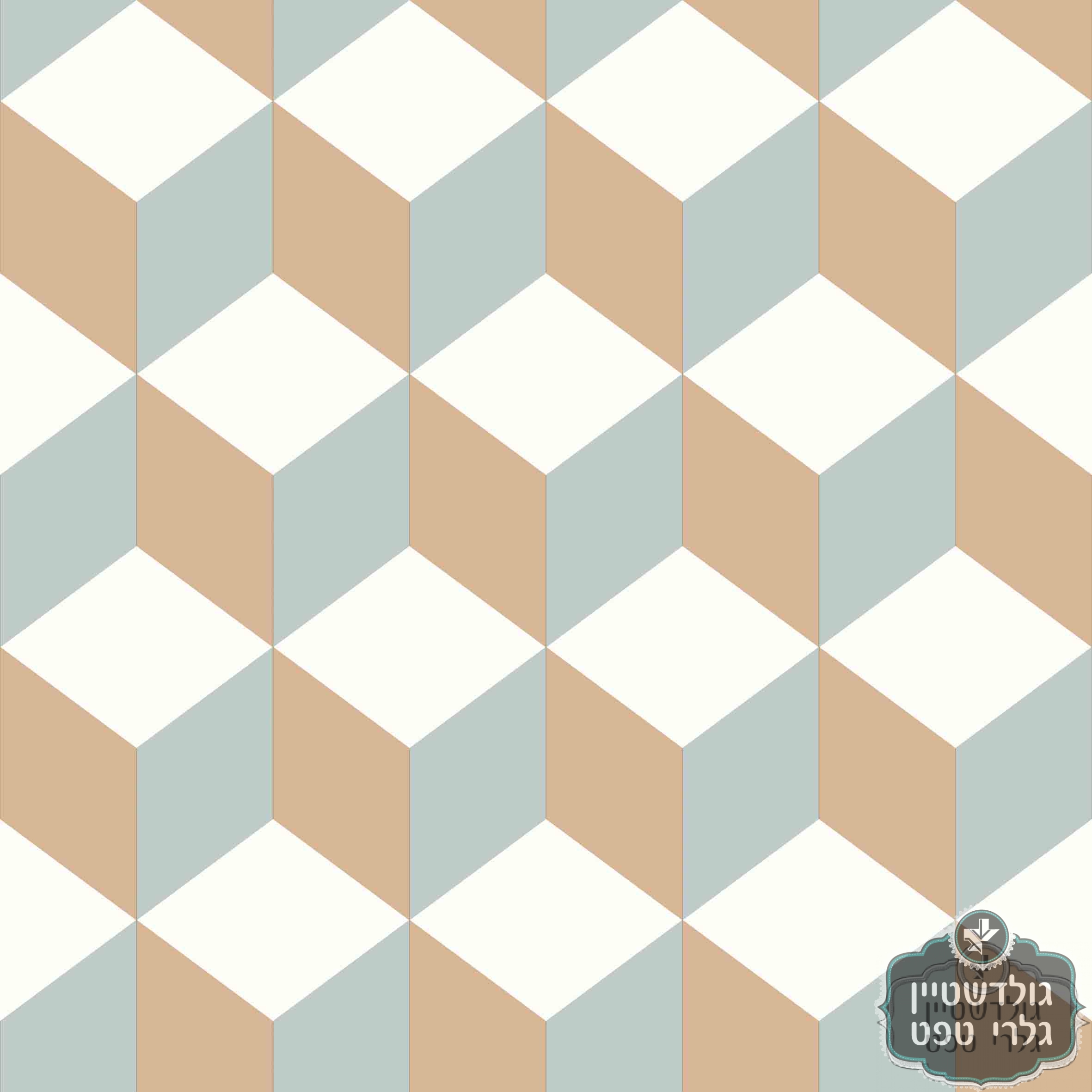 טפט קוביות תלת מימד תכלת מעושן, חום, לבן