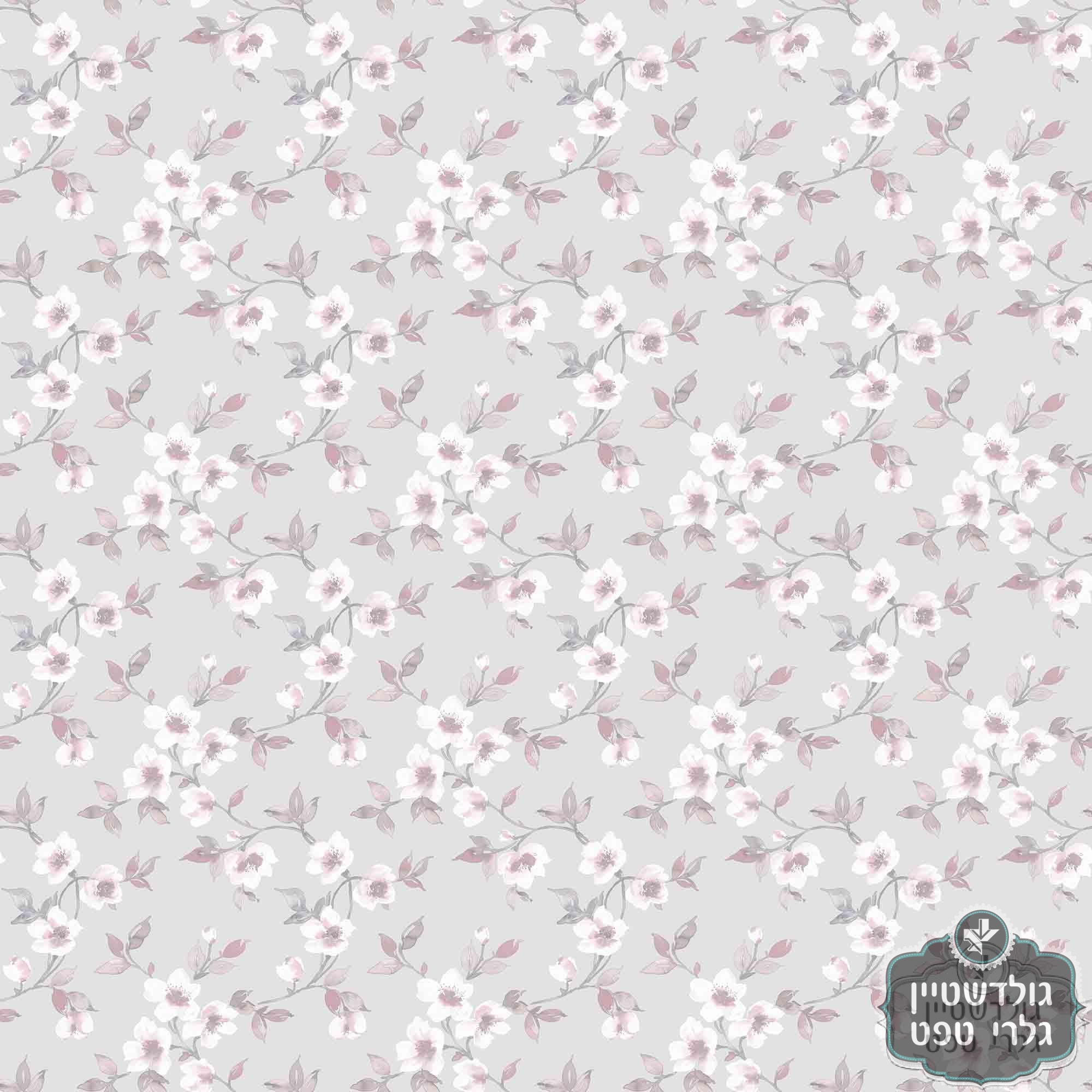 טפט פרחים קטנים, ורוד עתיק, ורוד מעושן, לבן, על רקע אפור סגנון שאבי שיק