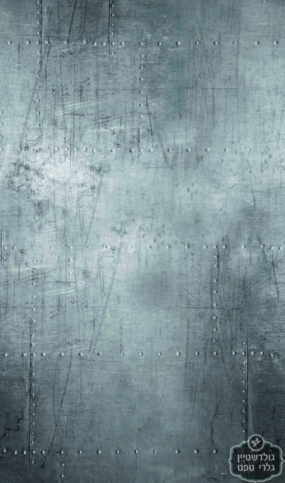תמונת טפט עשוי ויניל, איכותי, דמוי לוחות ברזל רוסטיק עם ברגים, בגוון אפור פלדה