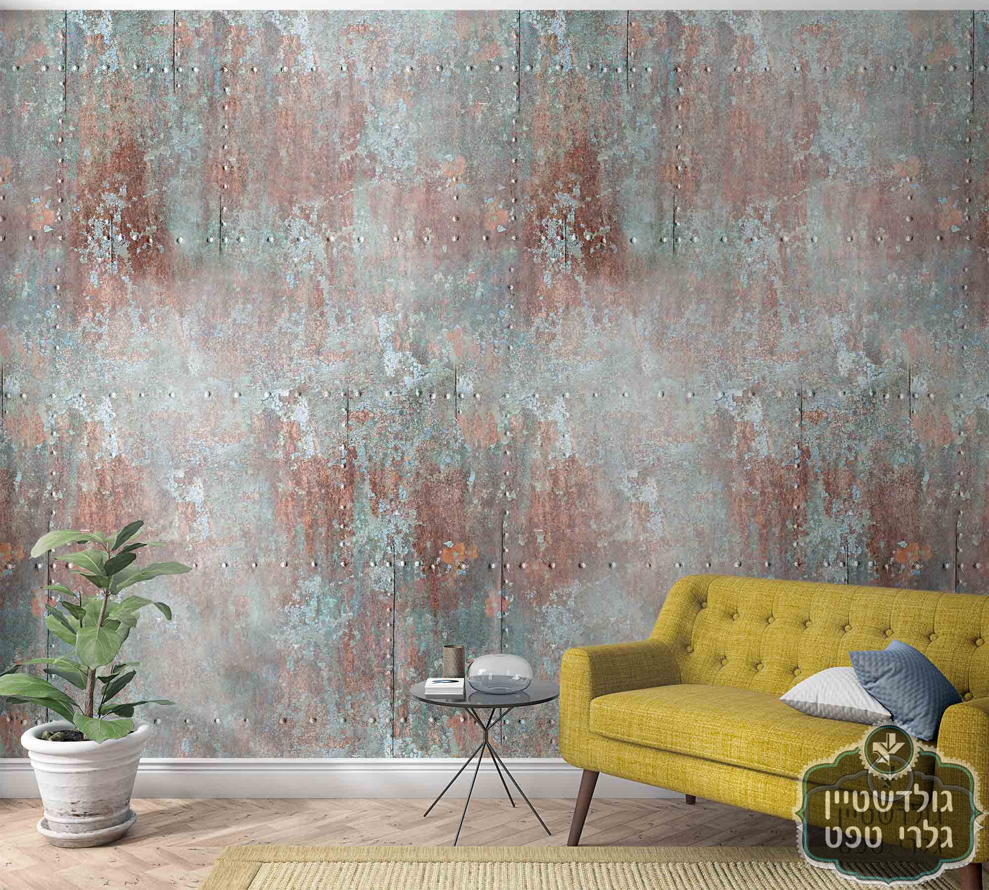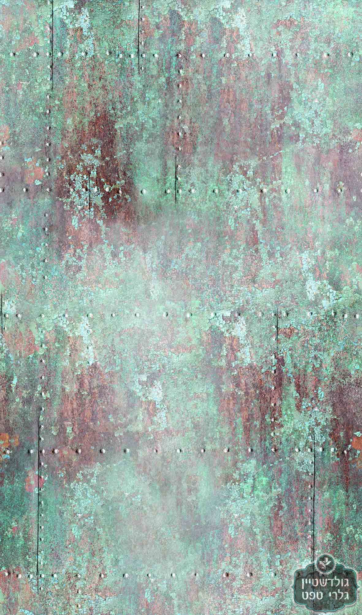 תמונת טפט עשוי ויניל, איכותי, דמוי לוחות ברזל רוסטיק עם ברגים, בגוון ברונזה, חלודה, קורוזיה ירקרק