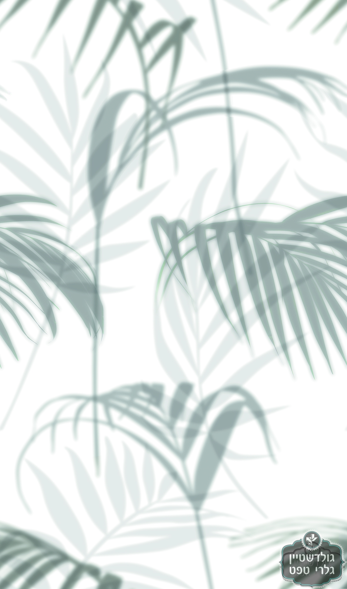 תמונת טפט עשוי ויניל, איכותי, עלי דקל באפור על רקע לבן שמנת לבן