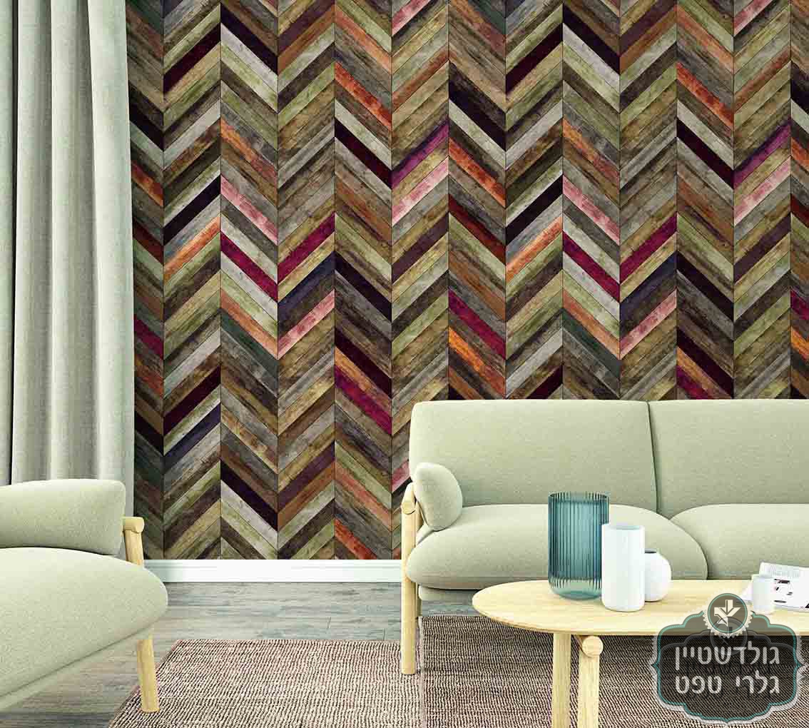 תמונת טפט עשוי ויניל, איכותי, קורות עץ צבעוניות בדוגמת פישבון נגיעות אדום
