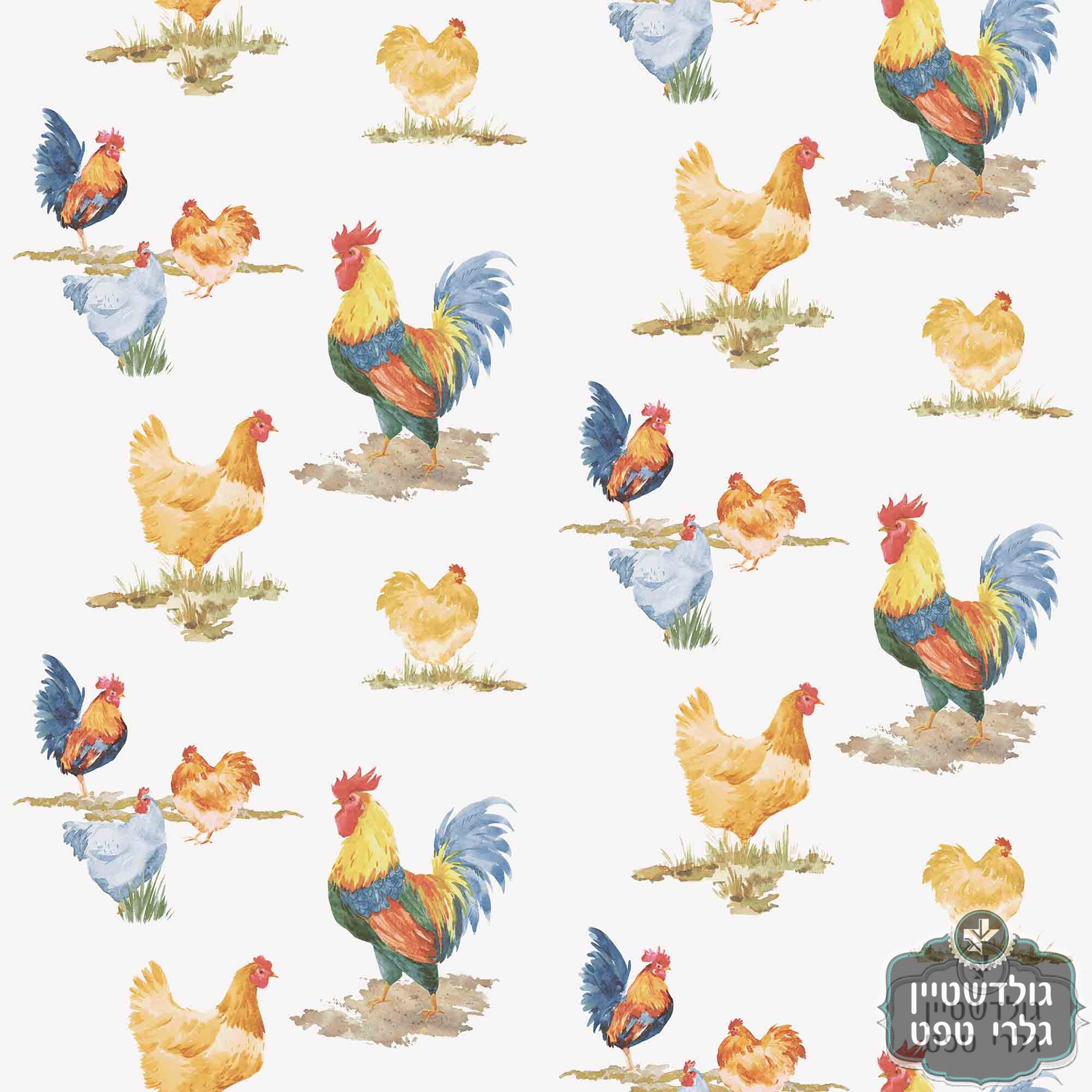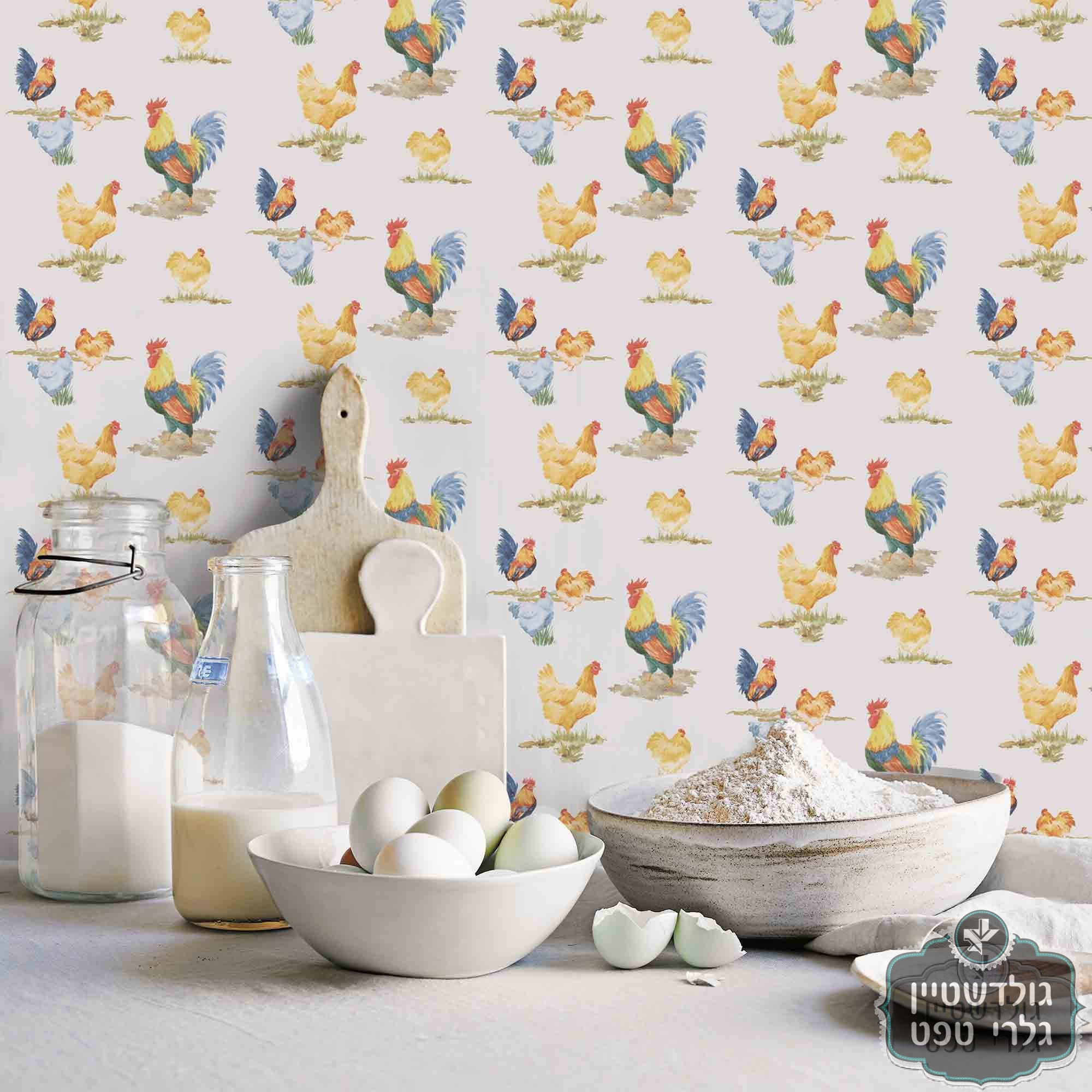 טפט תרנגולים צבעוניים, לפינת אוכל, מטבח, בית קפה, מסעדה