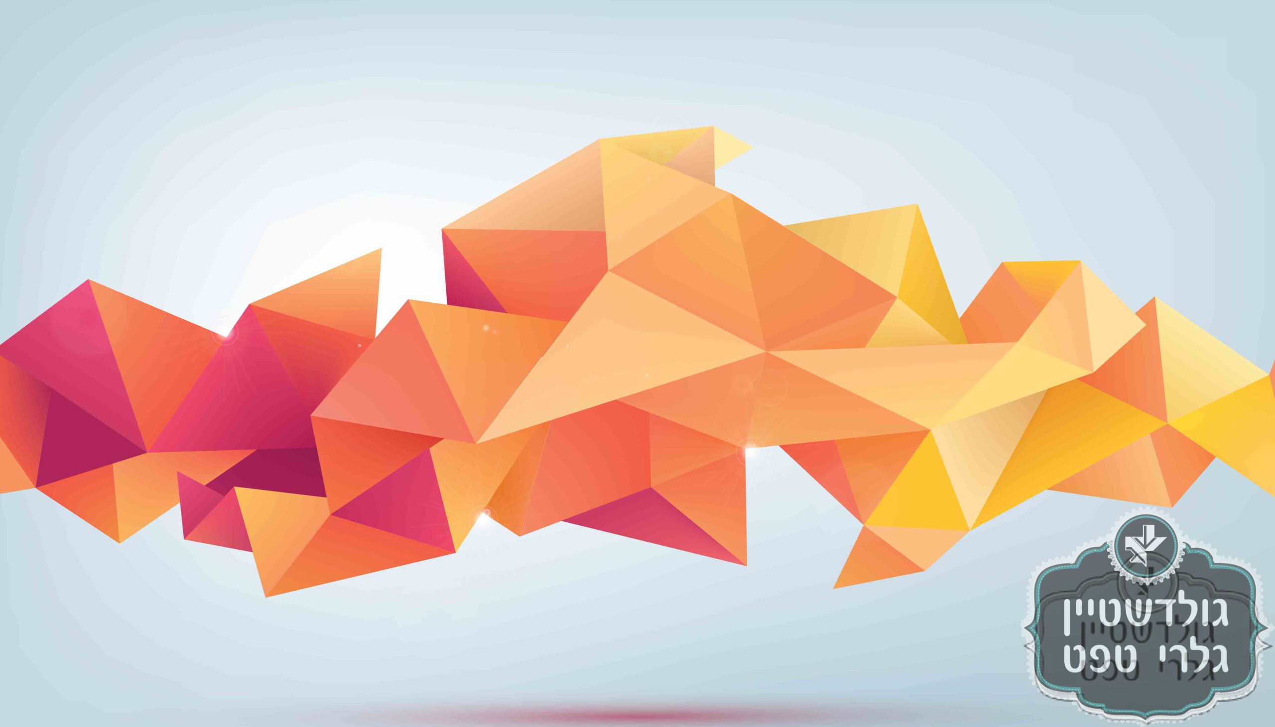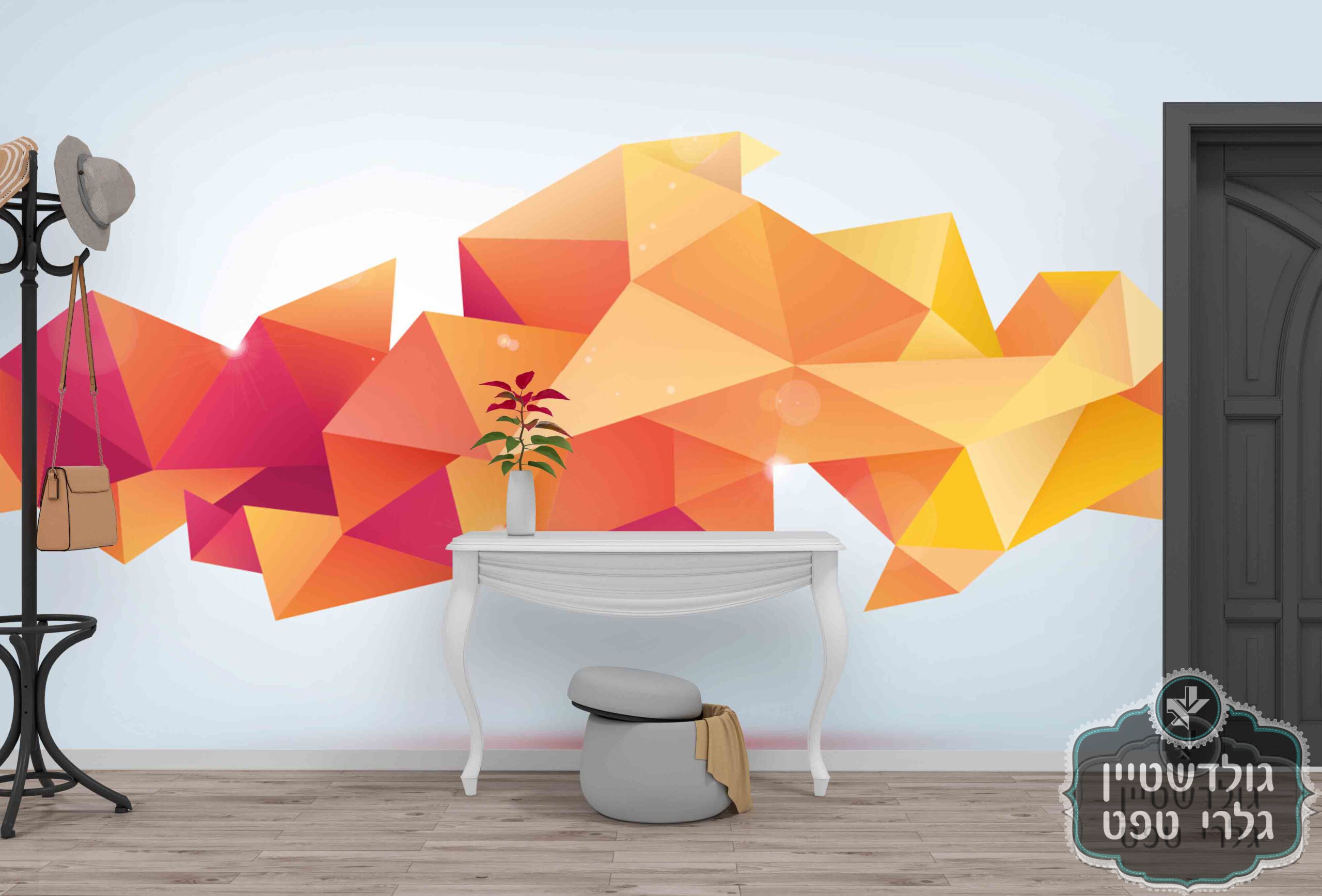 תמונת טפט, במראה משולשים אוריגמי, גאומטרי, גווני כתום אדום על רקע תכלת