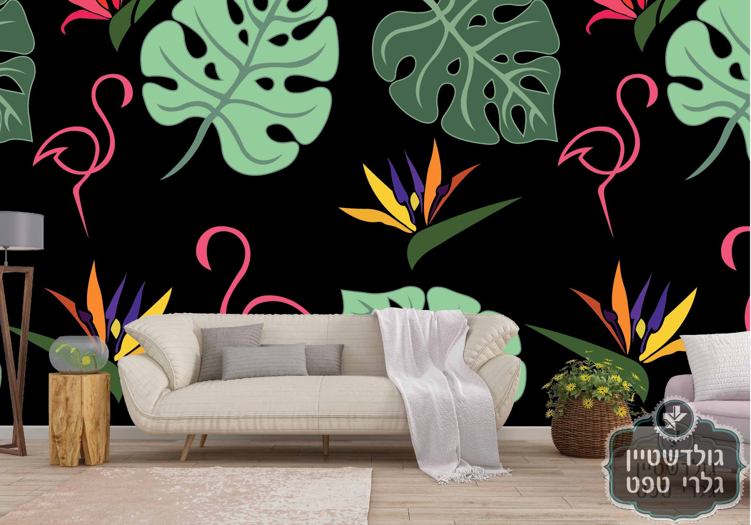 תמונת טפט, מוטיבים טרופי על רקע שחור