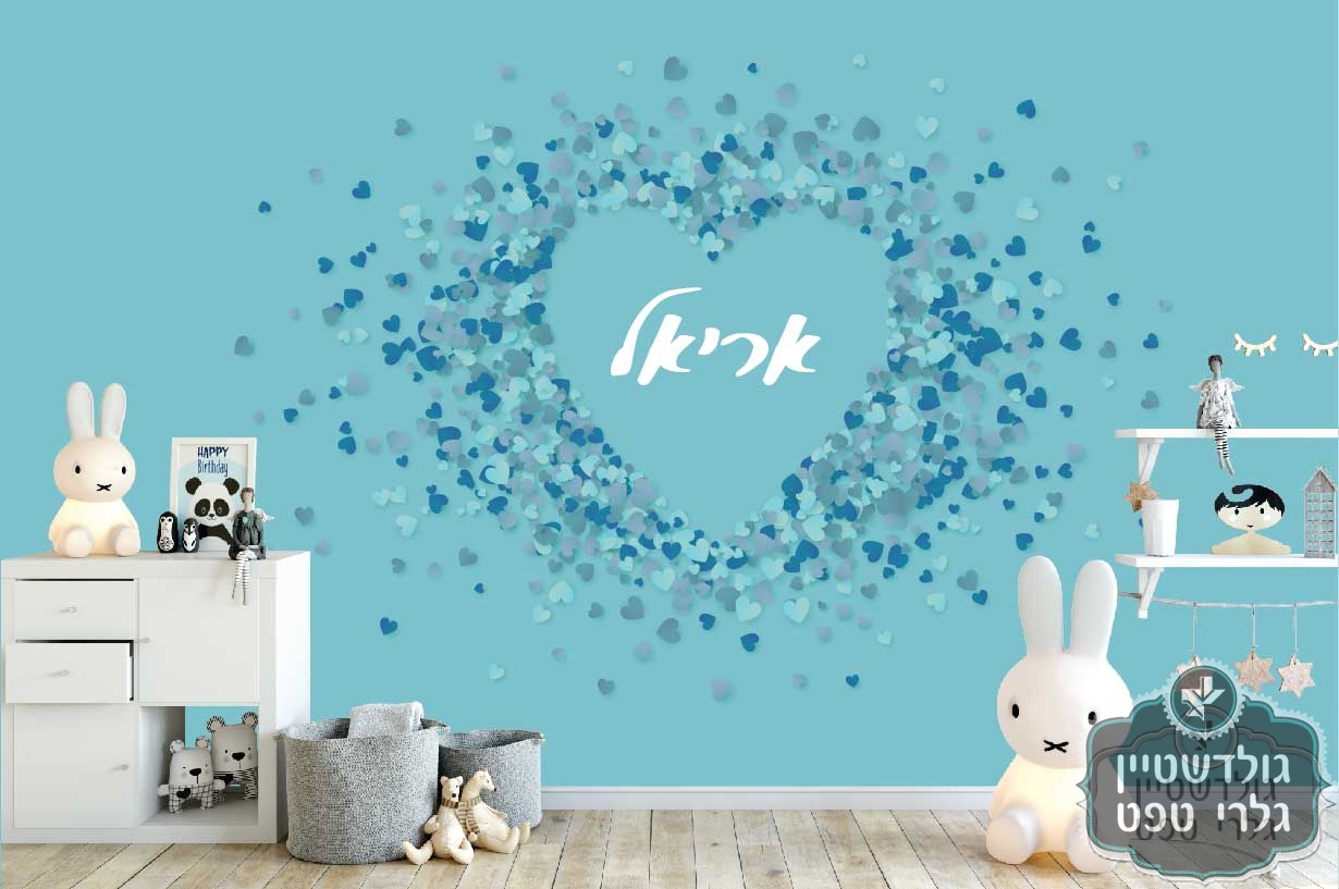 תמונת טפט, לב גדול מורכב לבבות, ניתן לרשום את שם הילד