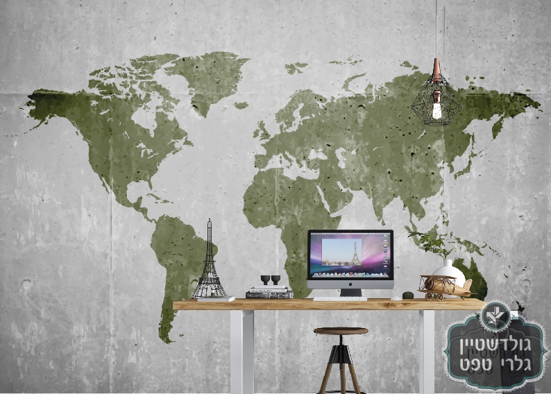 תמונת טפט, טפט מפת עולם ירוק על רקע בטון מטויח