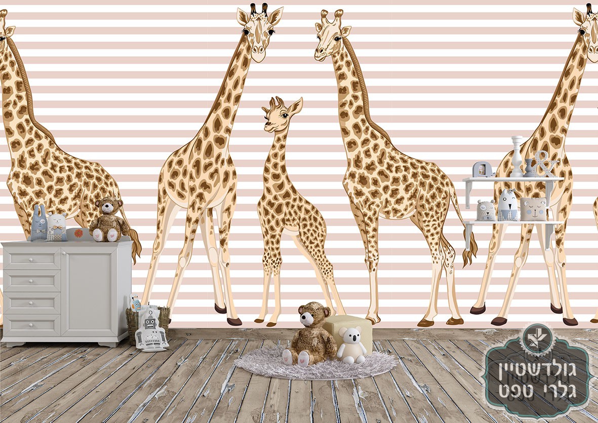 *תמונת טפט, משפחת הג'ירפות על רקע פסים