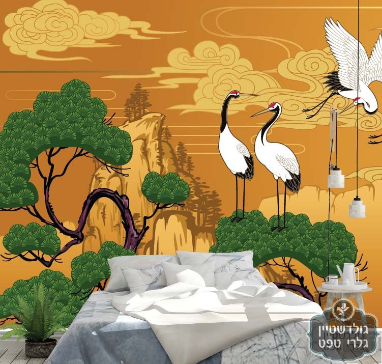 תמונת טפט, עצים וציפורים נוף אסיאתי סגנון סיני