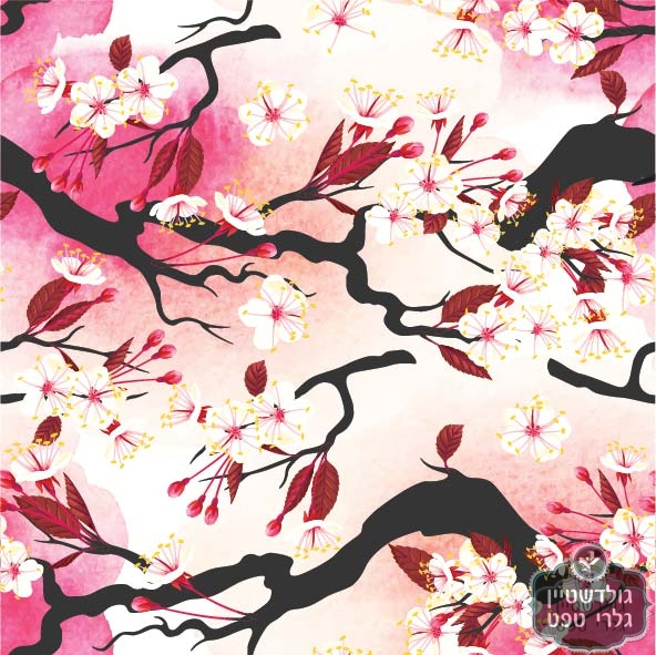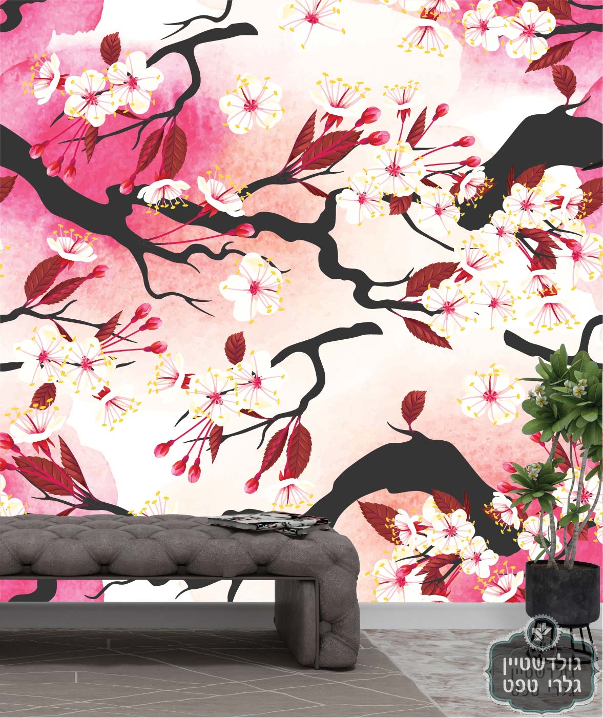 תמונת טפט, עצי סאקורה יפני על רקע ורוד שמנת