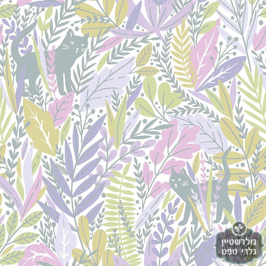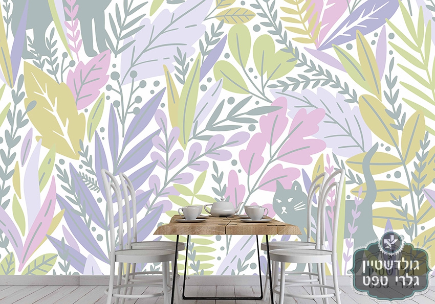 תמונת טפט, ציור עלים ופרחים פריסטייל בצבעי פסטל
