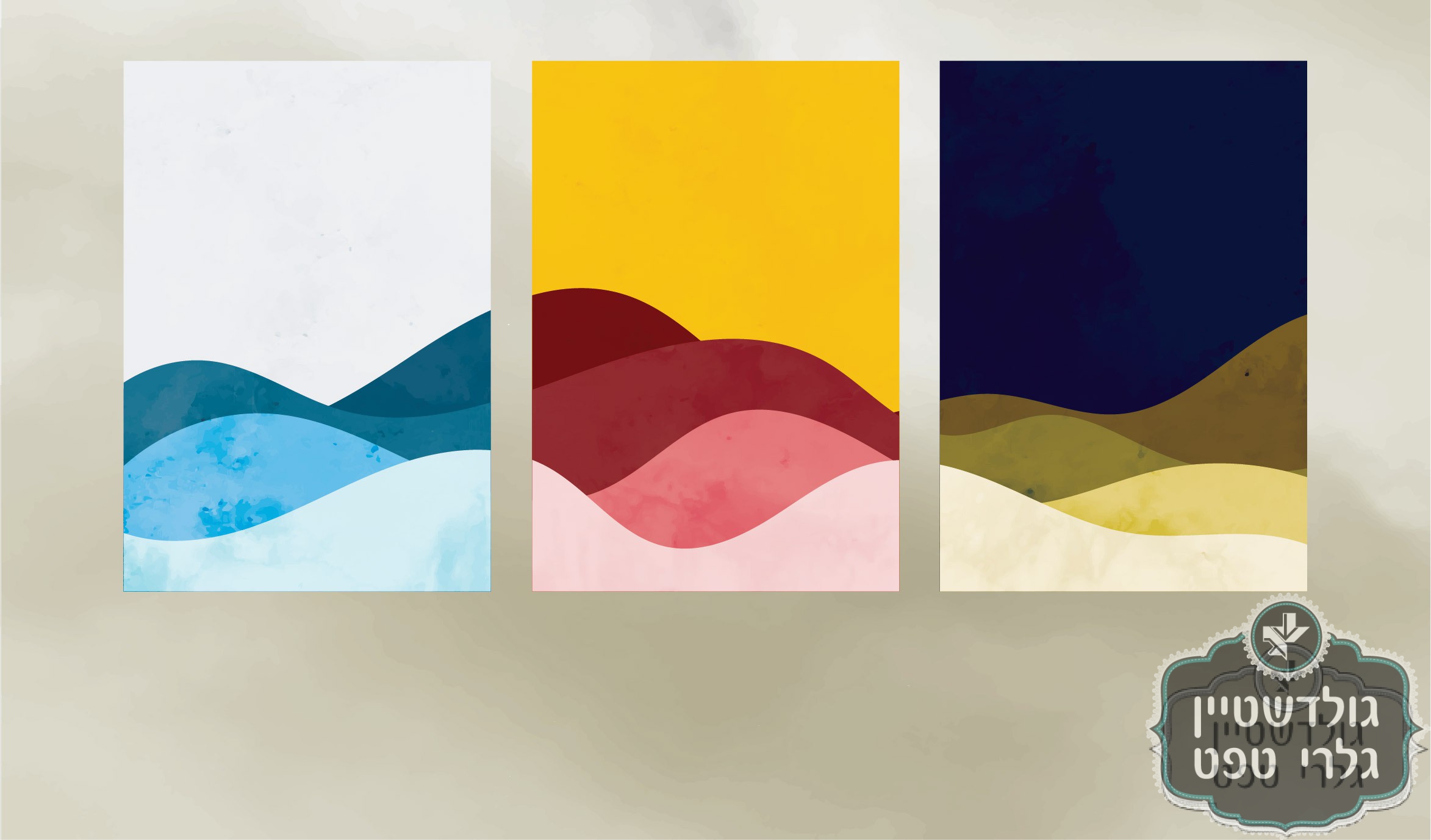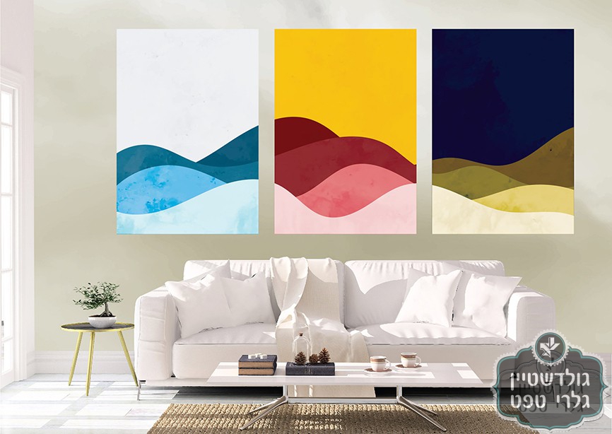 תמונת טפט, שלוש תמונות בסגנון ארט, הרים צבעוני, כולל הרקע, כתמונה אחת על כל הקיר