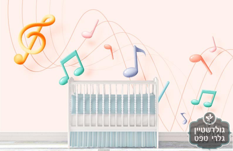 *תמונת טפט, קיר מוזיקלי, תוים על רקע ורוד בהיר