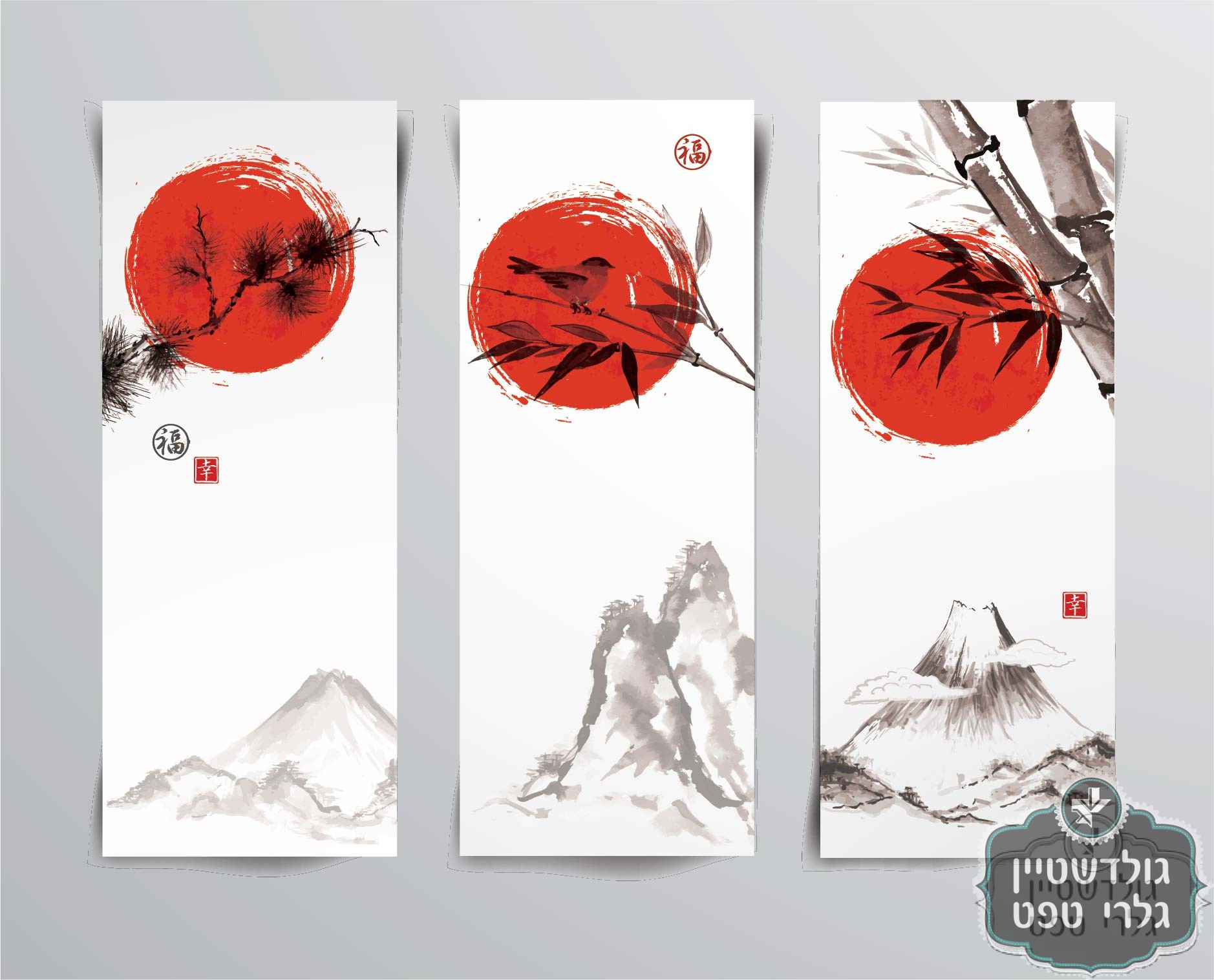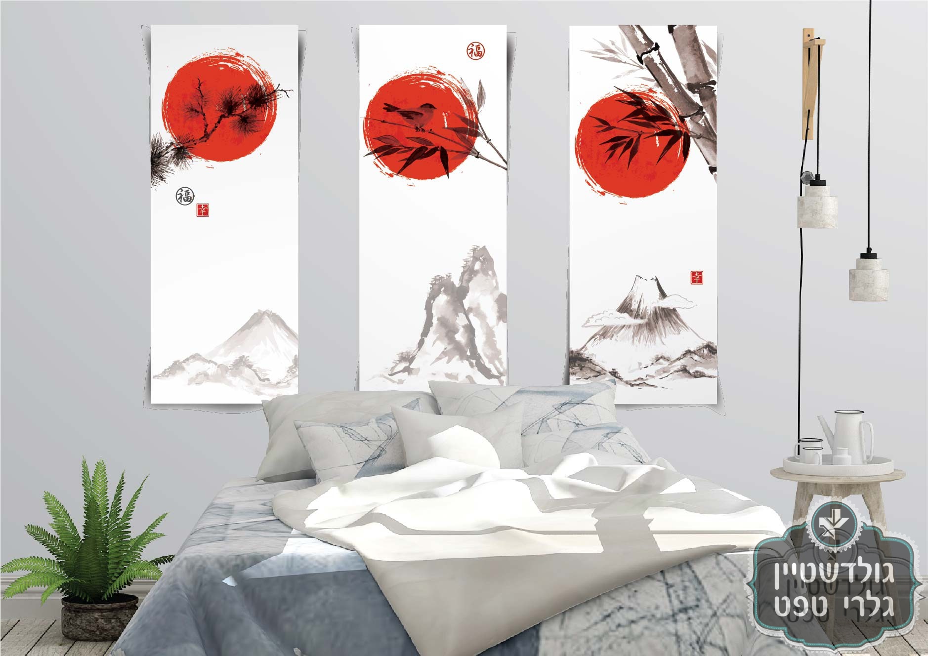 תמונת טפט, שלוש תמונות בסגנון אסיאתי כולל הרקע, כתמונה אחת על כל הקיר
