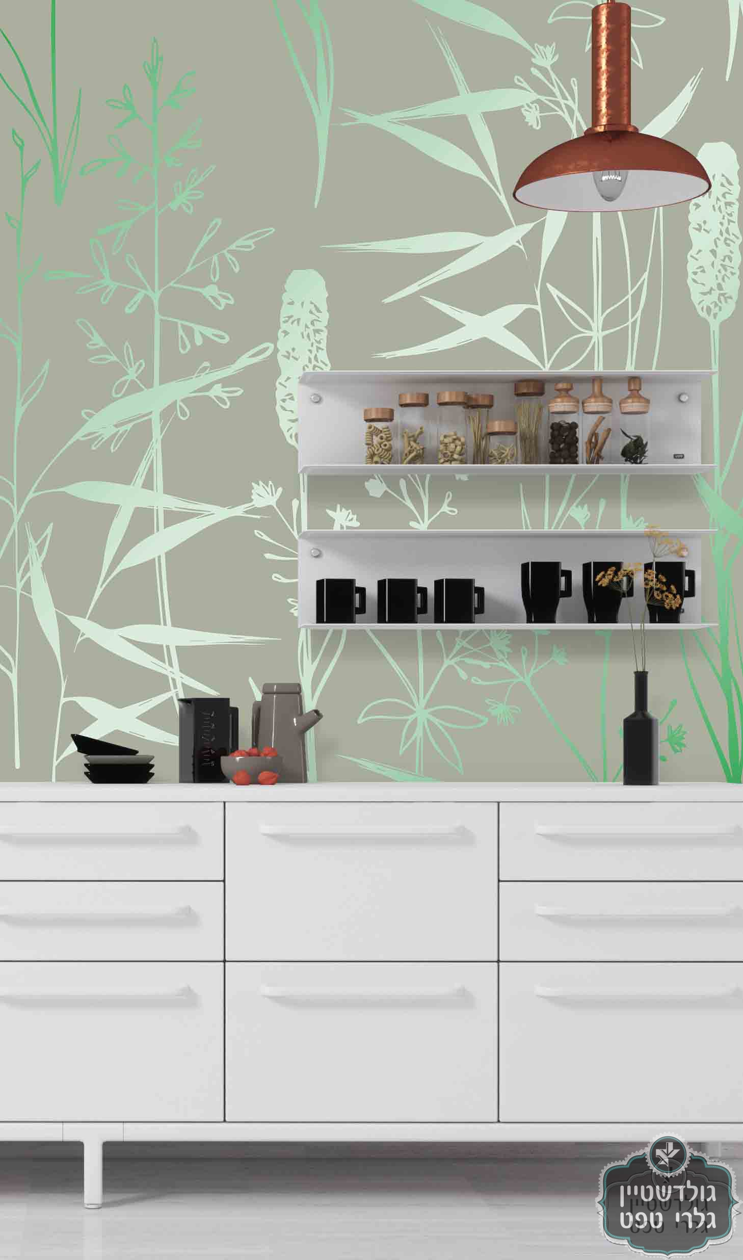 תמונת טפט קני סוף וצמחים אסיאתים על רקע ירוק מרווה