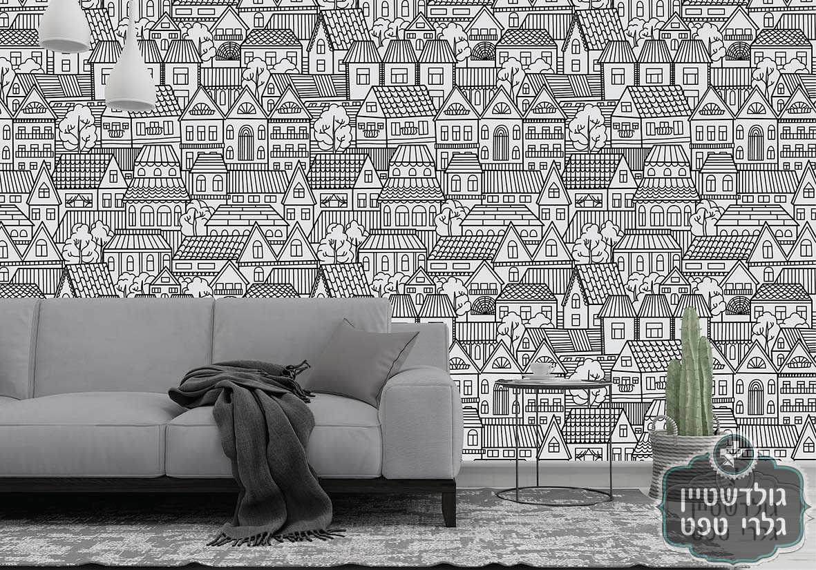 תמונת טפט, שכונה אורבנית בתים שחור לבן